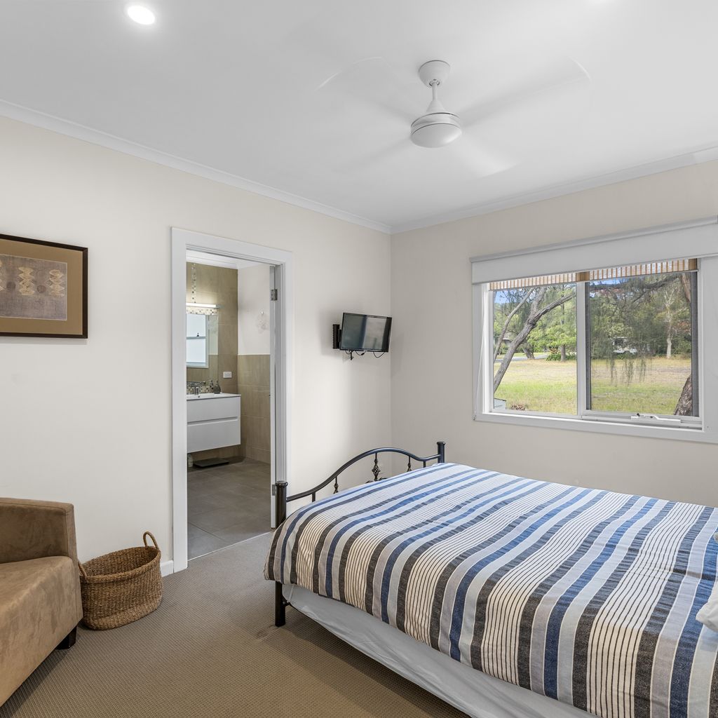 Enjoy spacious open-plan living with a cozy Coonara wood heater for winter stays and split-system air conditioning for summer comfort. The well-appointed kitchen is fully equipped with electric appliances, perfect for preparing meals to enjoy on the outdoor deck or front verandah.