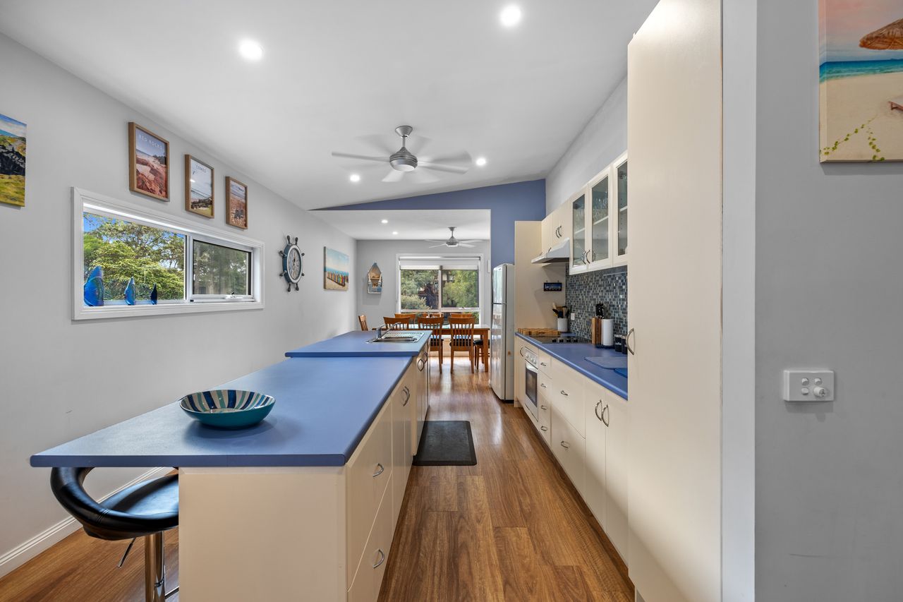 Enjoy spacious open-plan living with a cozy Coonara wood heater for winter stays and split-system air conditioning for summer comfort. The well-appointed kitchen is fully equipped with electric appliances, perfect for preparing meals to enjoy on the outdoor deck or front verandah.