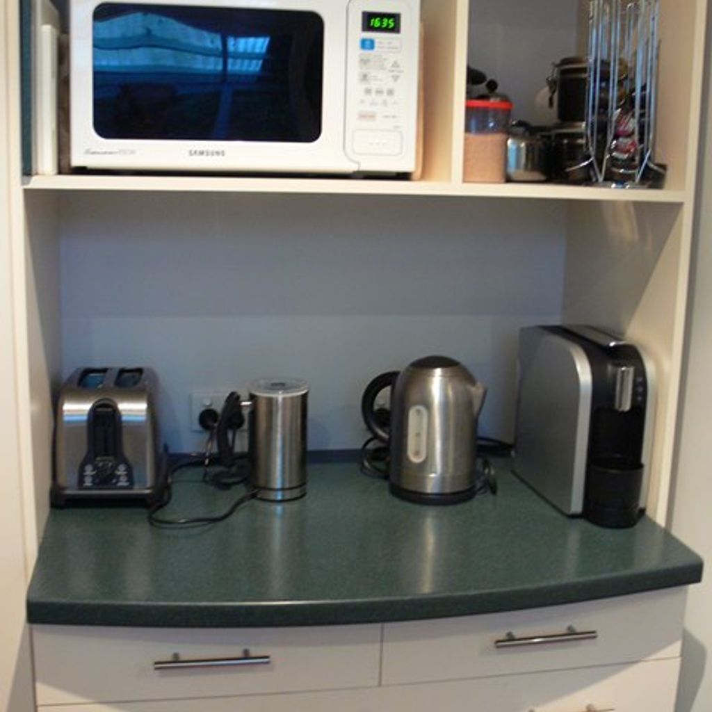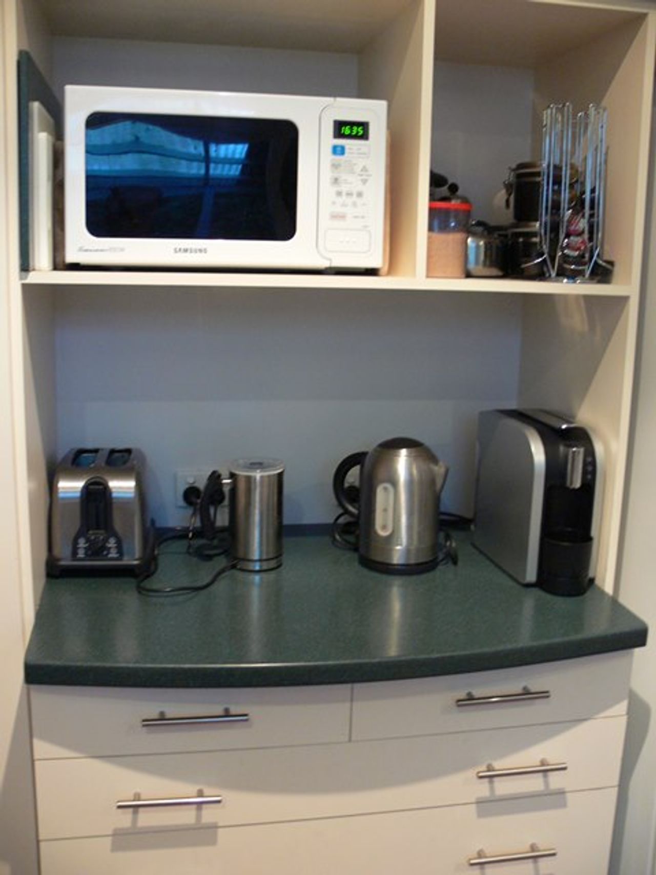 They have thought of everything in the well appointed kitchen with plenty of crockery, cutlery, serving platters and preparation utensils to help you whip up any meal on the stainless steel gas stove/oven. There is also a microwave, toaster, kettle, coffee machine and a dishwasher. The split system in this open plan design will keep you warm and cool whilst you are cooking too.