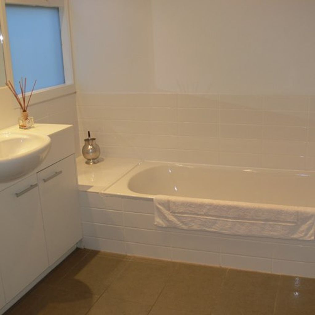 The beautiful bathroom has recently been renovated with a huge shower and bath and there is a second toilet located next to the laundry which contains a top loading washing machine and clothes rack for drying.