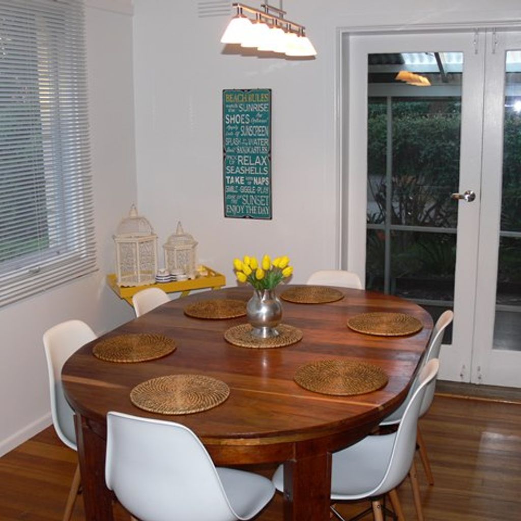 Comfort and style! This property contains everything you need for your next holiday including free Wi-Fi. Put your feet up with a good book by the fireplace in the living room, or watch a movie on the large flat screen TV. Put on some soothing tunes and relax in the delightful sunroom, or take a break on the huge picnic table with a drink or two and your BBQ lunch or dinner which you have prepared in the lovely back yard BBQ area. There has even been a run set up so your delightful dog can come along too, (as long as he/she is well behaved and stays outdoors please).