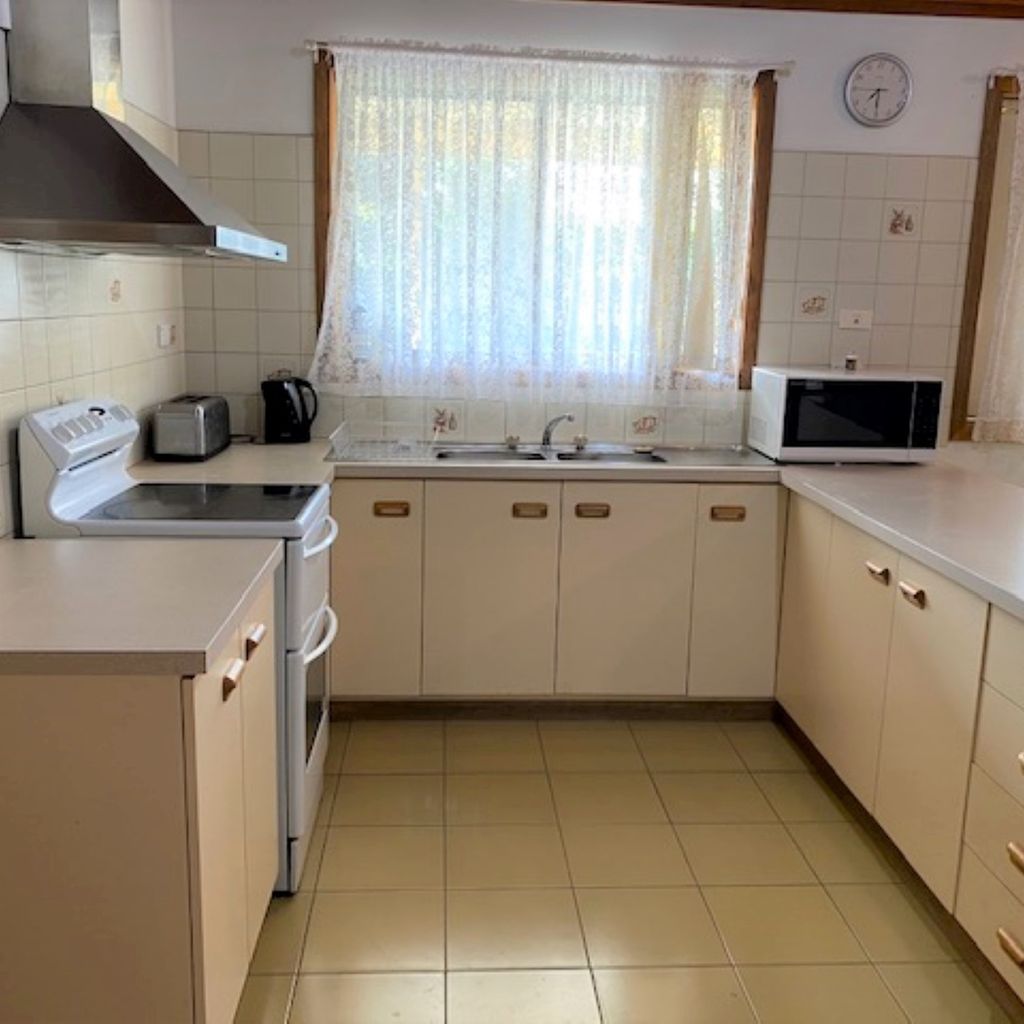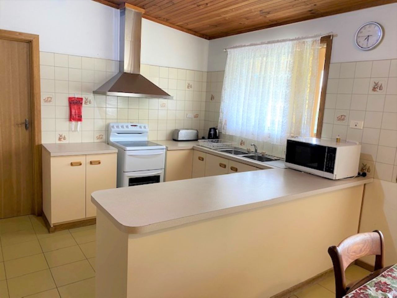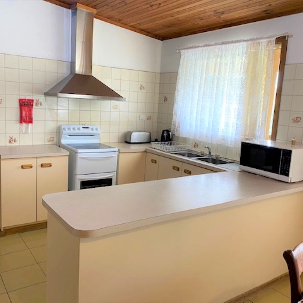 An affordable property consisting of 4 bedrooms, open plan living with split system, TV, open fire place, comfortable lounges and dining table with ample chairs. The kitchen has electric cooking as well as a microwave. A washing machine is provided for your convenience and there is a gas BBQ for use as well. The single garage is also available. There is a large, secure back yard ideal for the kids.