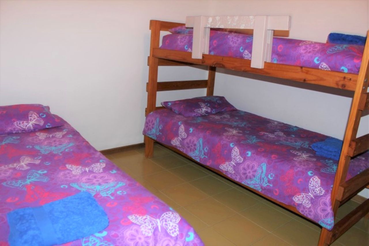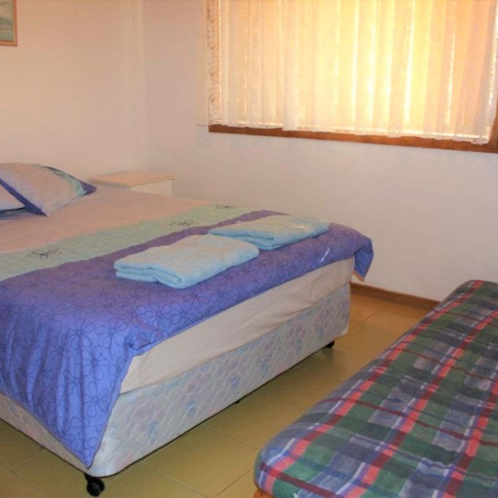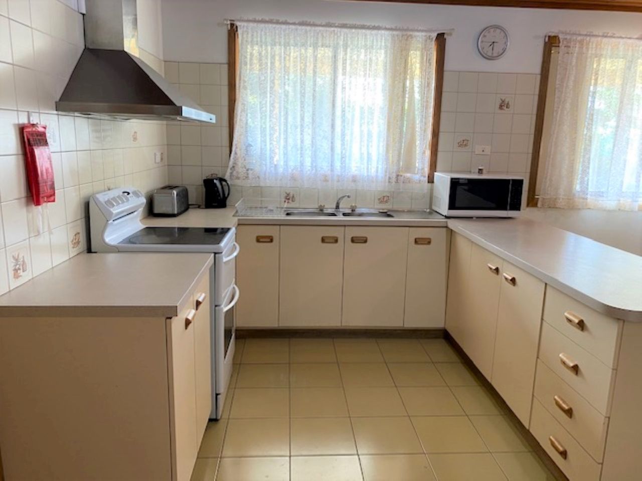 An affordable property consisting of 4 bedrooms, open plan living with split system, TV, open fire place, comfortable lounges and dining table with ample chairs. The kitchen has electric cooking as well as a microwave. A washing machine is provided for your convenience and there is a gas BBQ for use as well. The single garage is also available. There is a large, secure back yard ideal for the kids.
