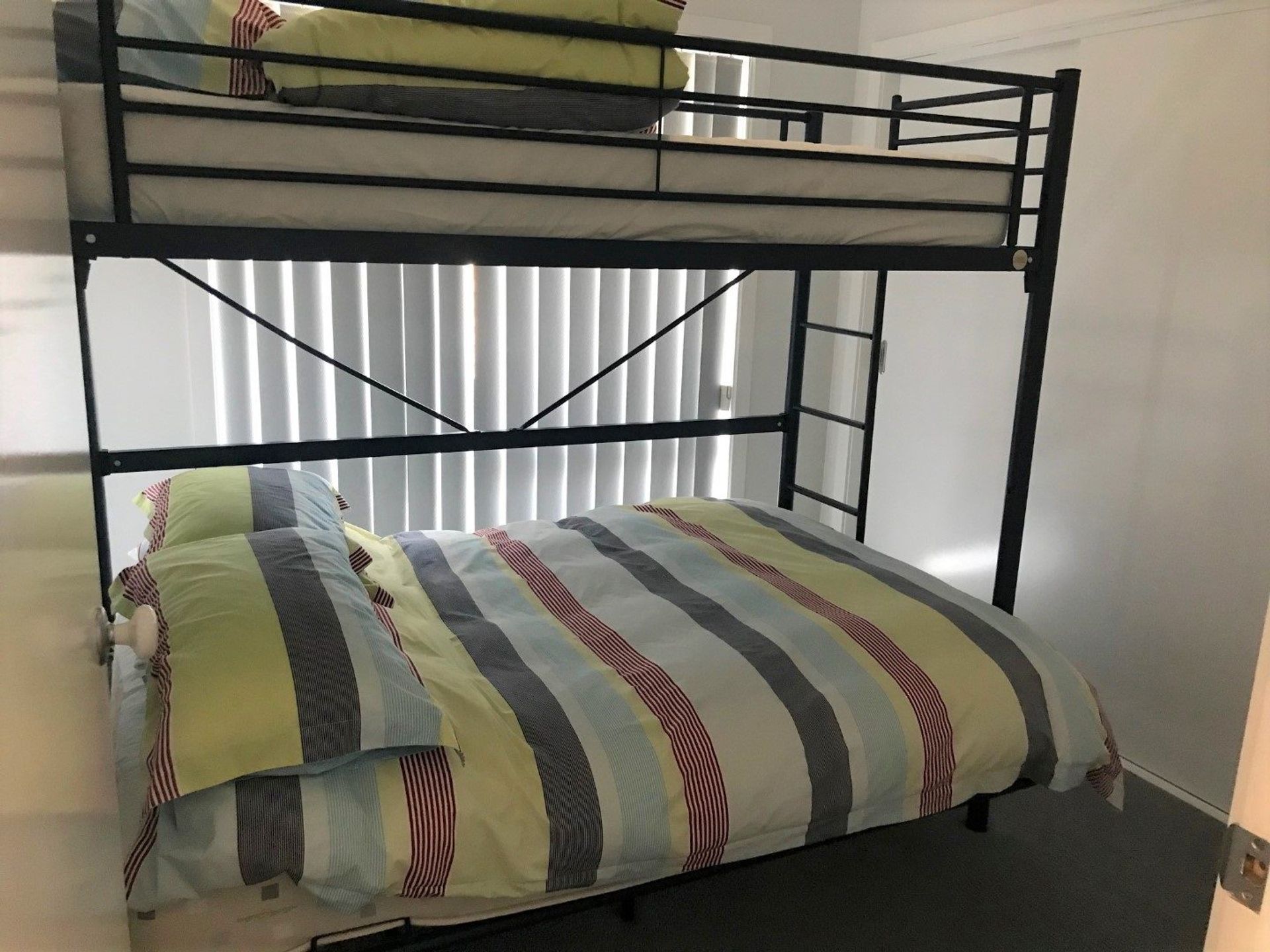 There are 3 bedrooms - the master bedroom with queen bed has en-suite bathroom and walk in robe. The other 2 bedrooms both have tri-bunks (single on top and double on the bottom) making lots of of beds for the family.