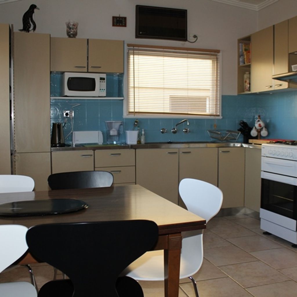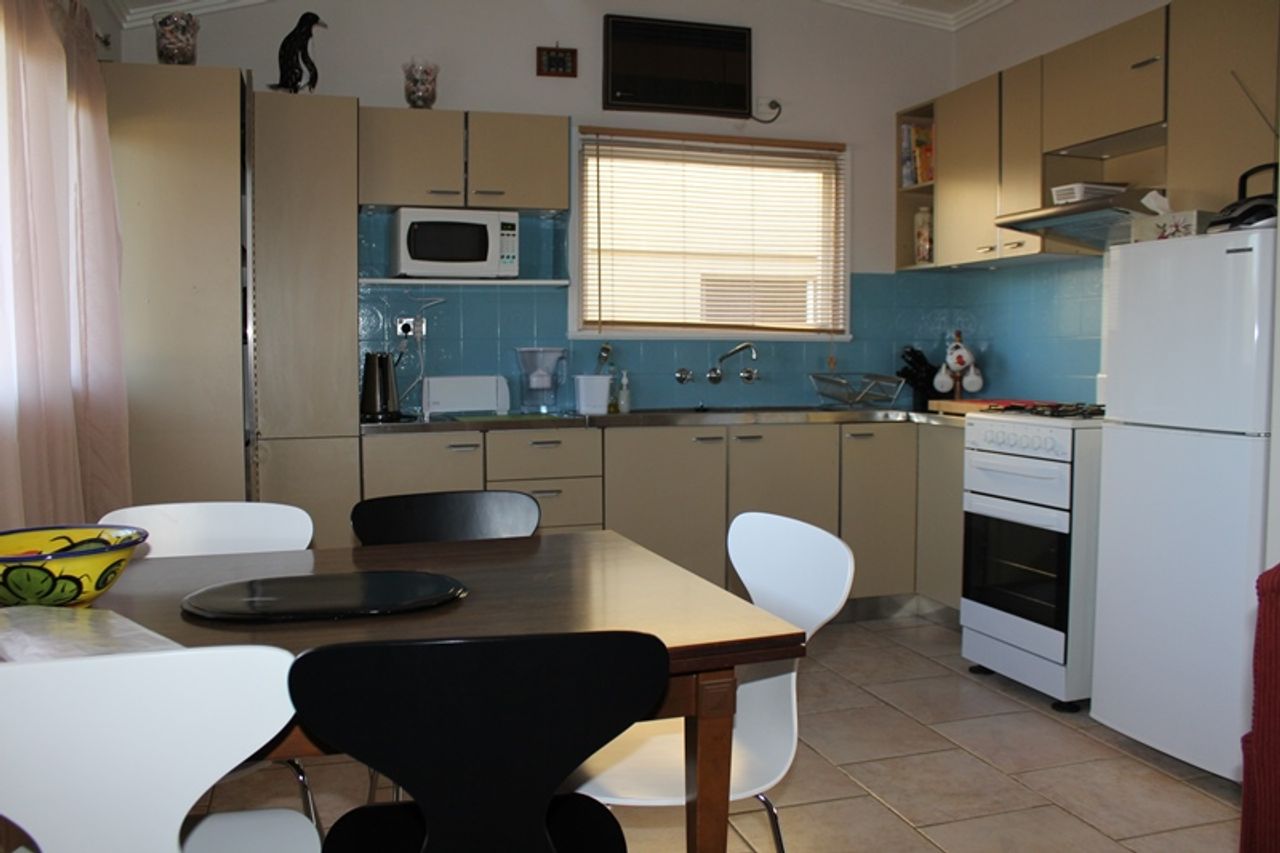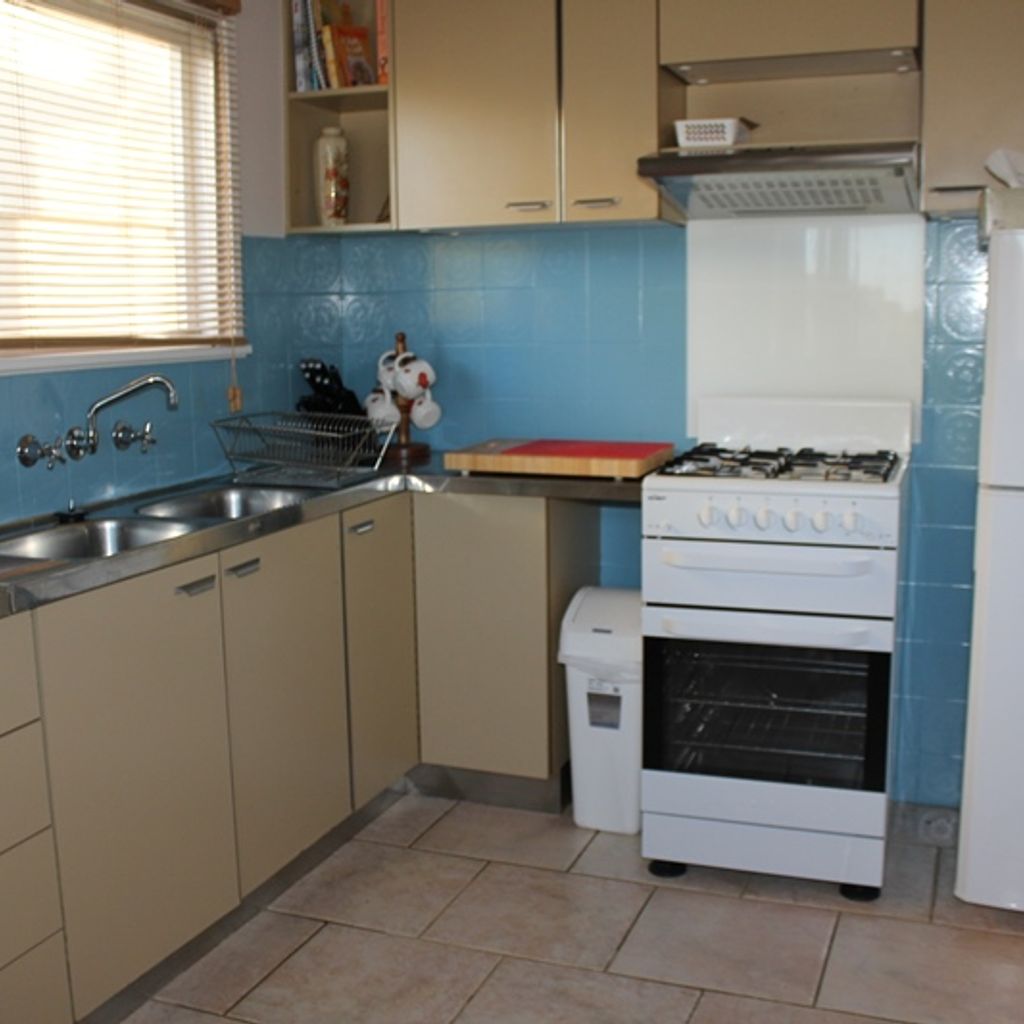 There is a central dining table and the kitchen is modern and well equipped. The kitchen has gas cooking, a large fridge, microwave and lots of platters and salad bowls perfect for alfresco dining out on the deck.