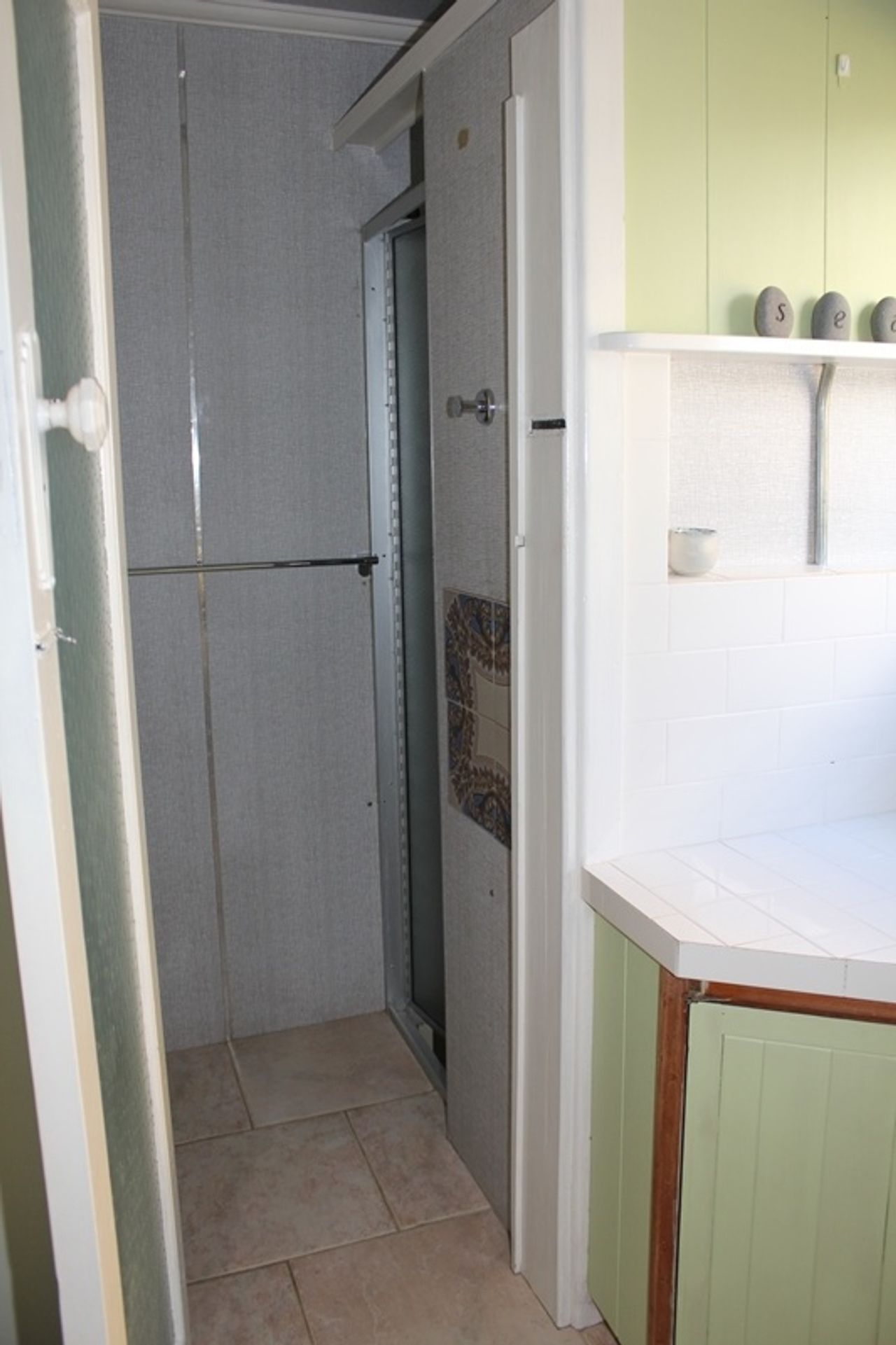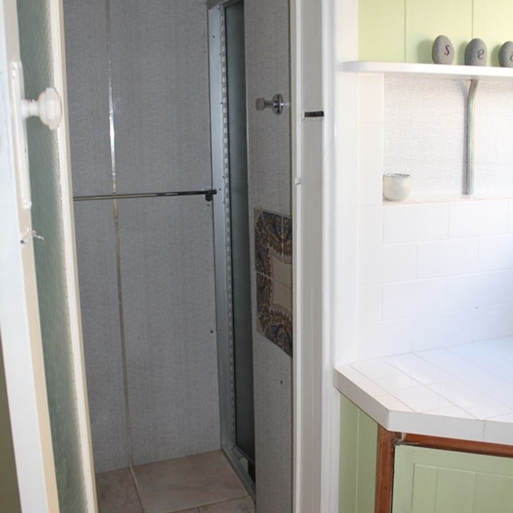 The laundry is on a lower level with a washing machine, iron and ironing board. There is a family bathroom and an outdoor shower with hot and cold water.