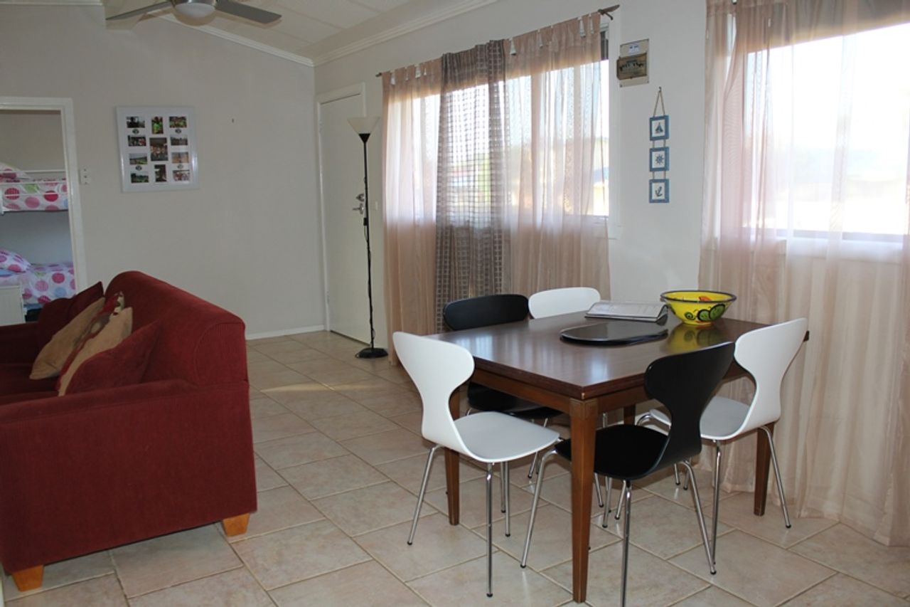 With a relaxed and family friendly feel, the main living is spacious and sunny with tiled floors, a wall mounted flat screen TV & DVD player, comfortable sofas, a ceiling fan and a split system for your comfort.