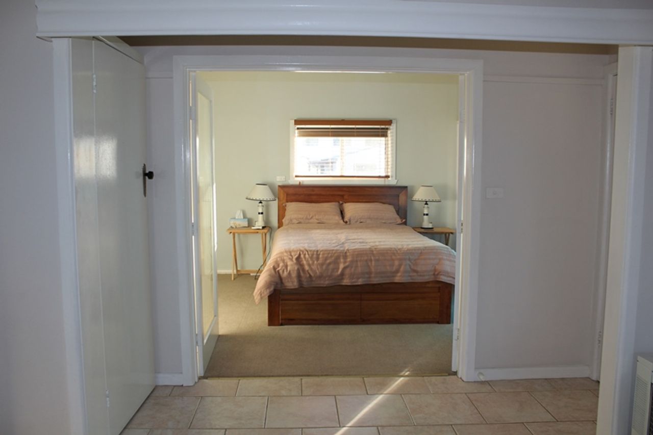 The main bedroom is off the lounge with double doors that can be left open or closed for privacy, the main bedroom has a queen bed, ceiling fan and a new split system. There is a small attic bedroom that is the double bedroom it is accessed by a small flight of internal stairs, and the other two bedrooms lead off the living area.