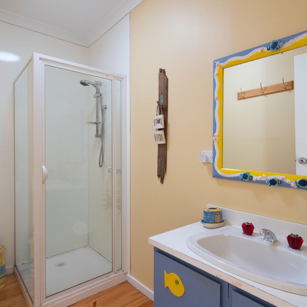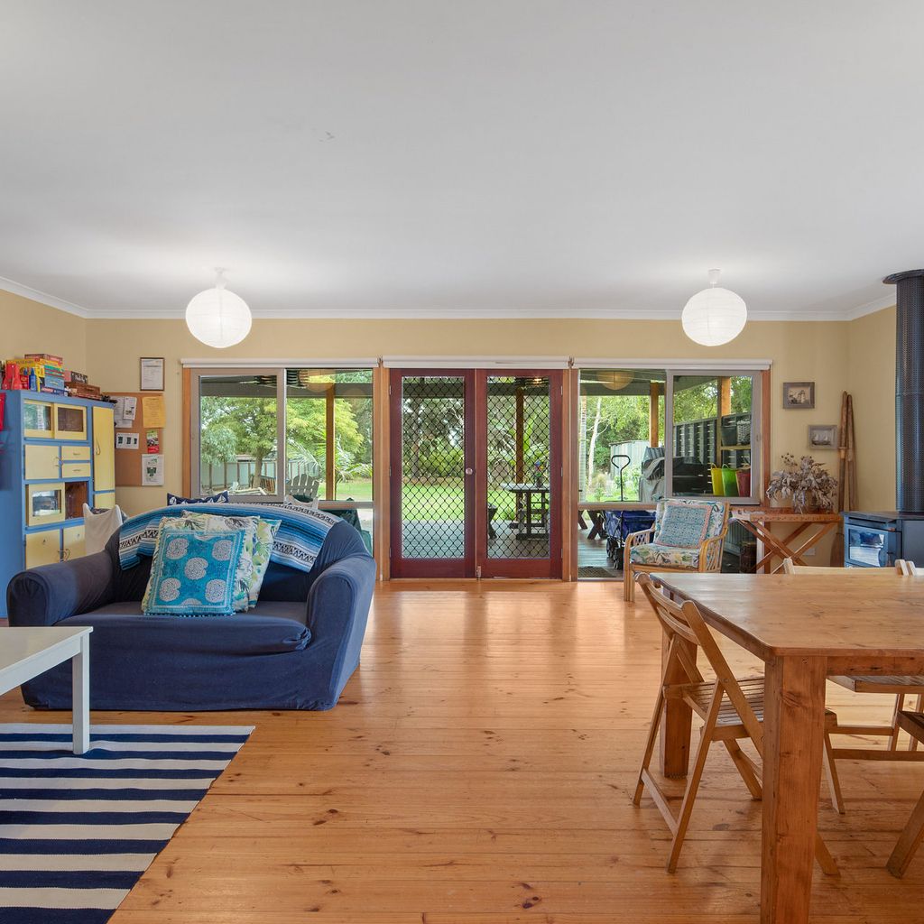 The home features four bedrooms, each with split-system heating and cooling, plus two living areas with TVs, comfy sofas, and a cosy wood fireplace for cooler months. Enjoy polished floorboards, a well-equipped kitchen with electric cooking and two fridges, and an expansive deck with BBQ for outdoor dining.