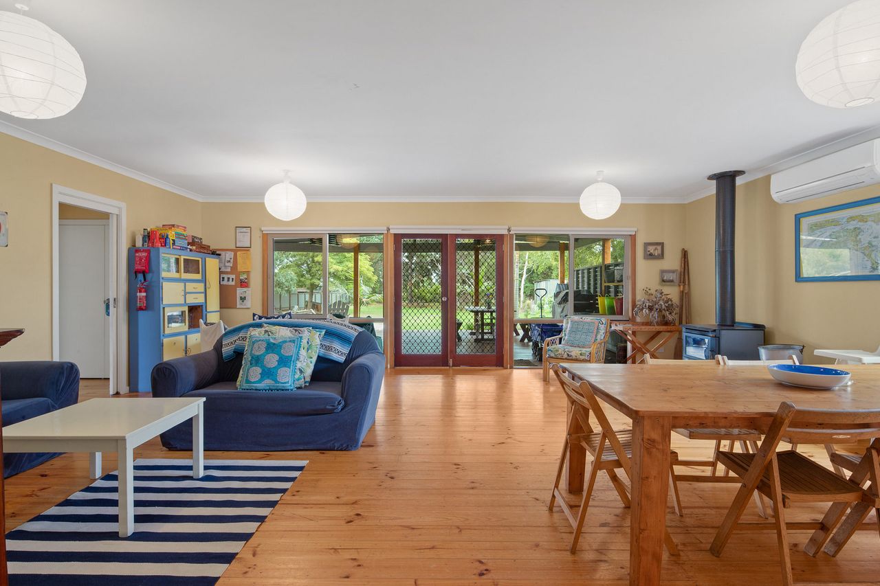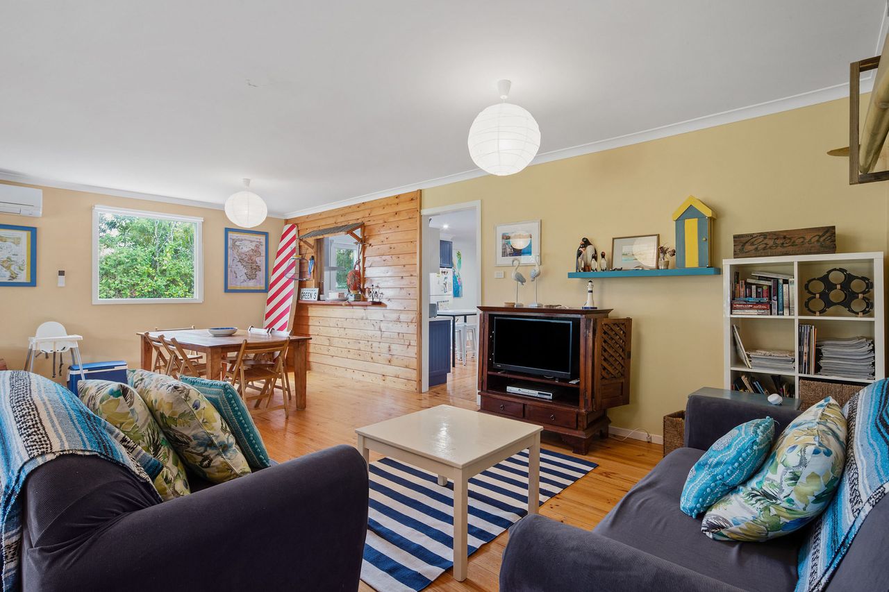 The home features four bedrooms, each with split-system heating and cooling, plus two living areas with TVs, comfy sofas, and a cosy wood fireplace for cooler months. Enjoy polished floorboards, a well-equipped kitchen with electric cooking and two fridges, and an expansive deck with BBQ for outdoor dining.