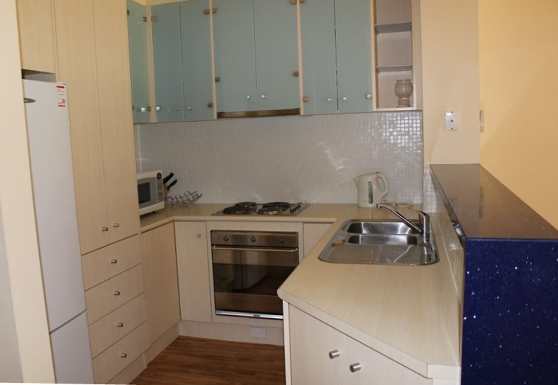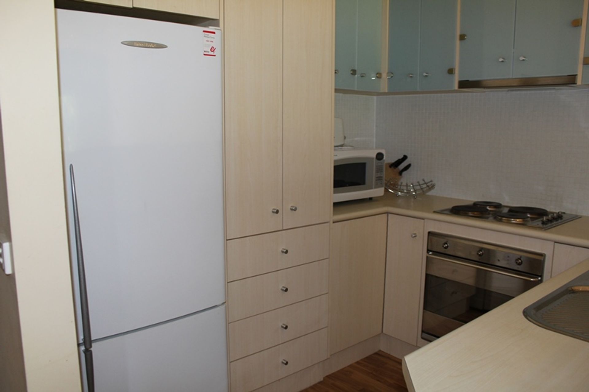 An open plan kitchen, dining and lounge includes split system air conditioning and heating, flat screen TV, Dvd and stereo. The kitchen is equipped with electric cooking, microwave and dishwasher.