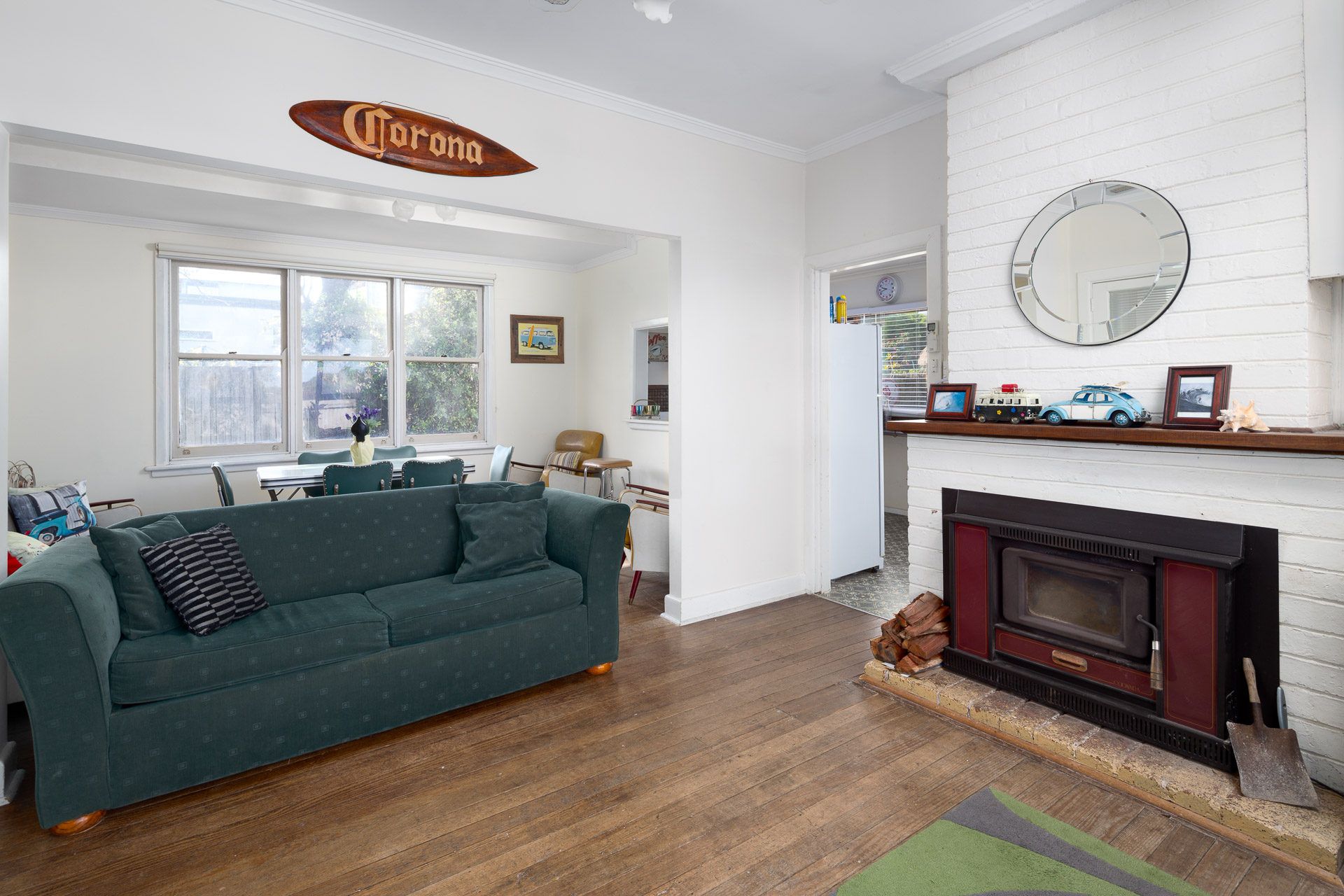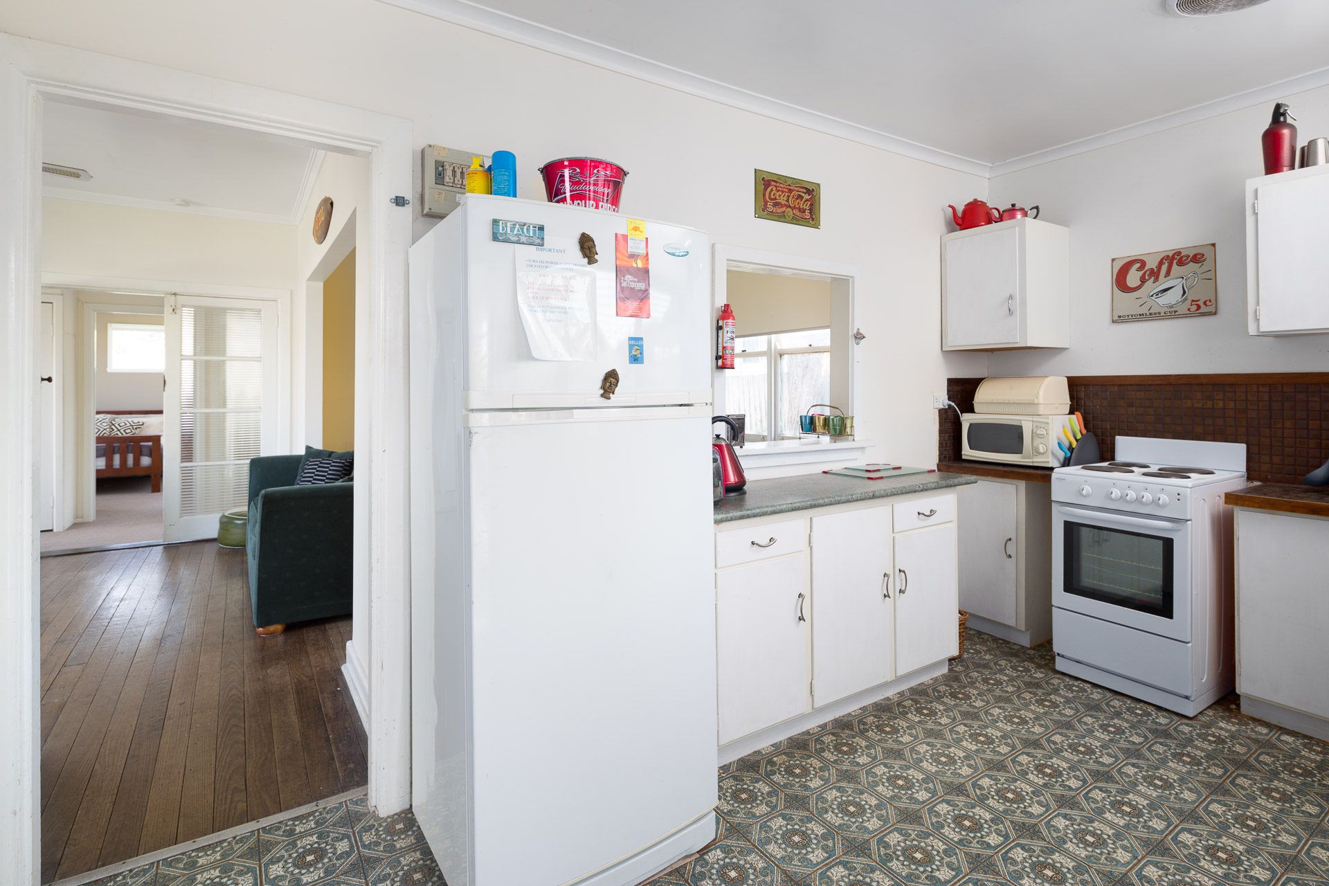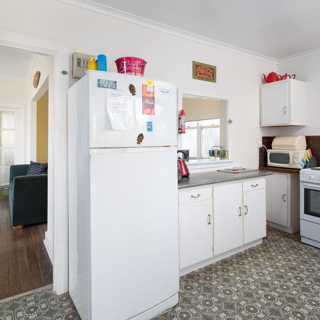 This quaint, retro, holiday cottage has timber floors in the living room, with split system heating and cooling, comfortable lounge and tv, video, dvd and stereo. Crank up the wood heater and take the chill out of the cooler days.