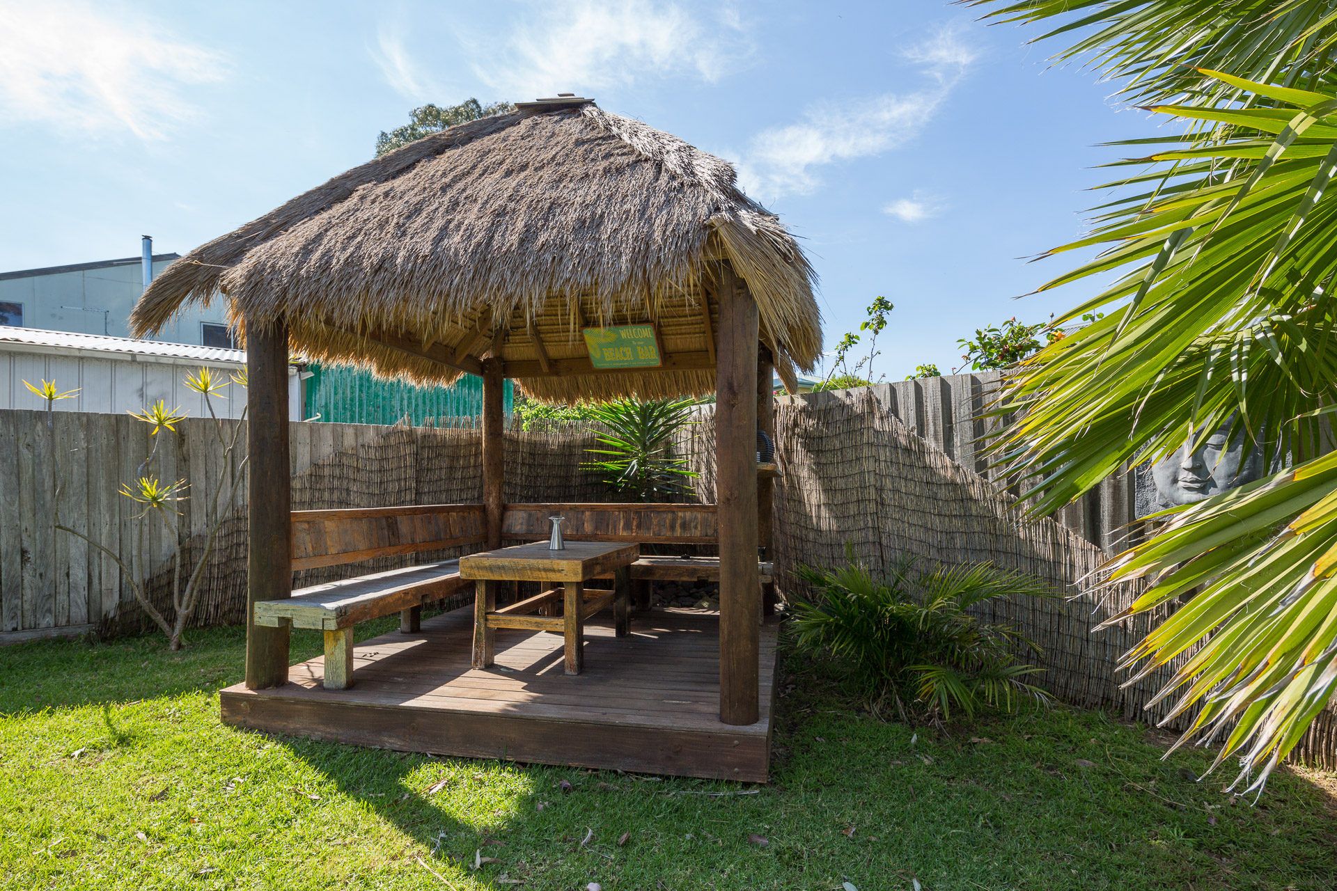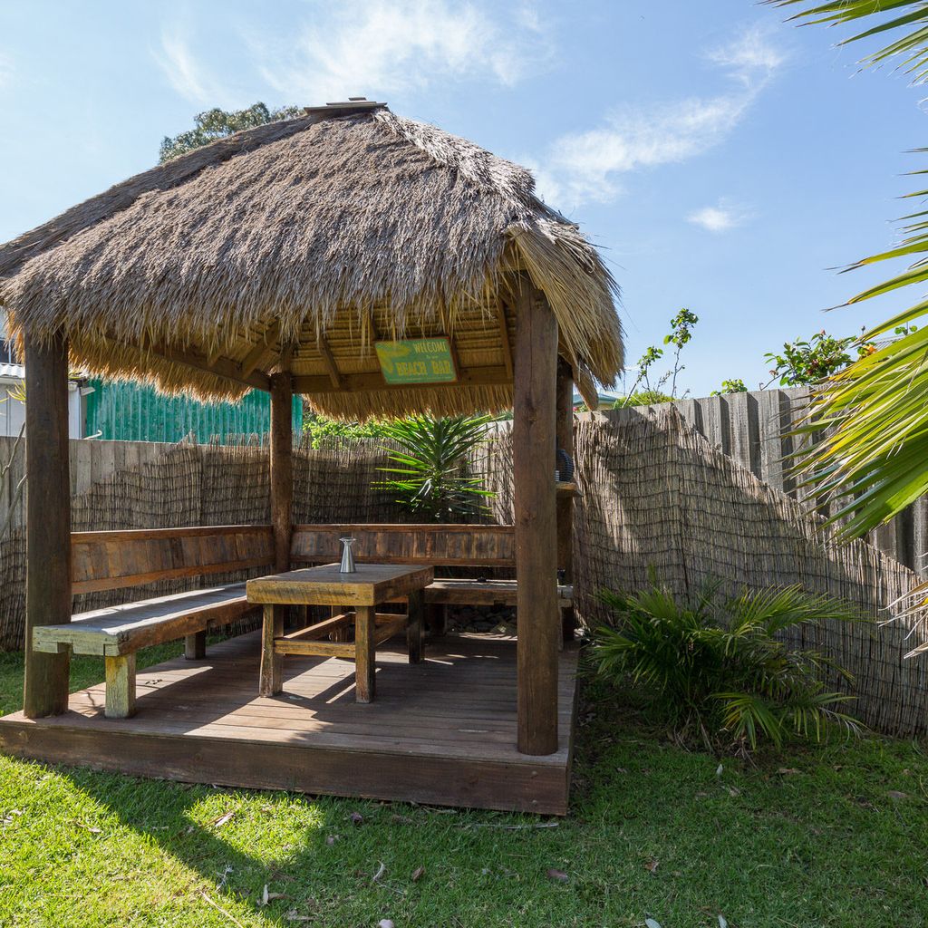 The house is set back from the road in a large fully fenced garden. Step out from the kitchen to the outdoor seating area with gas BBQ or move to the great Bali style hut.