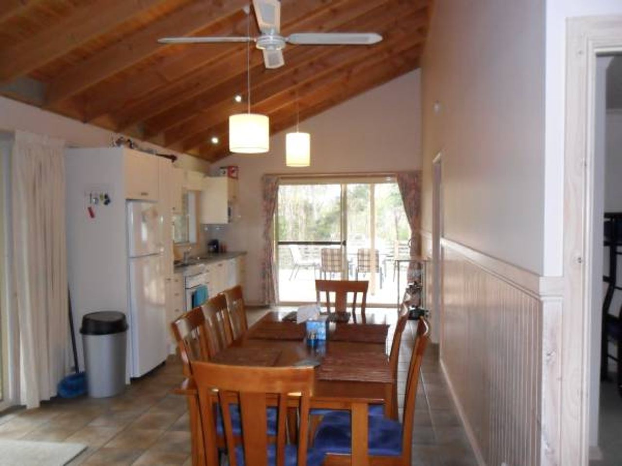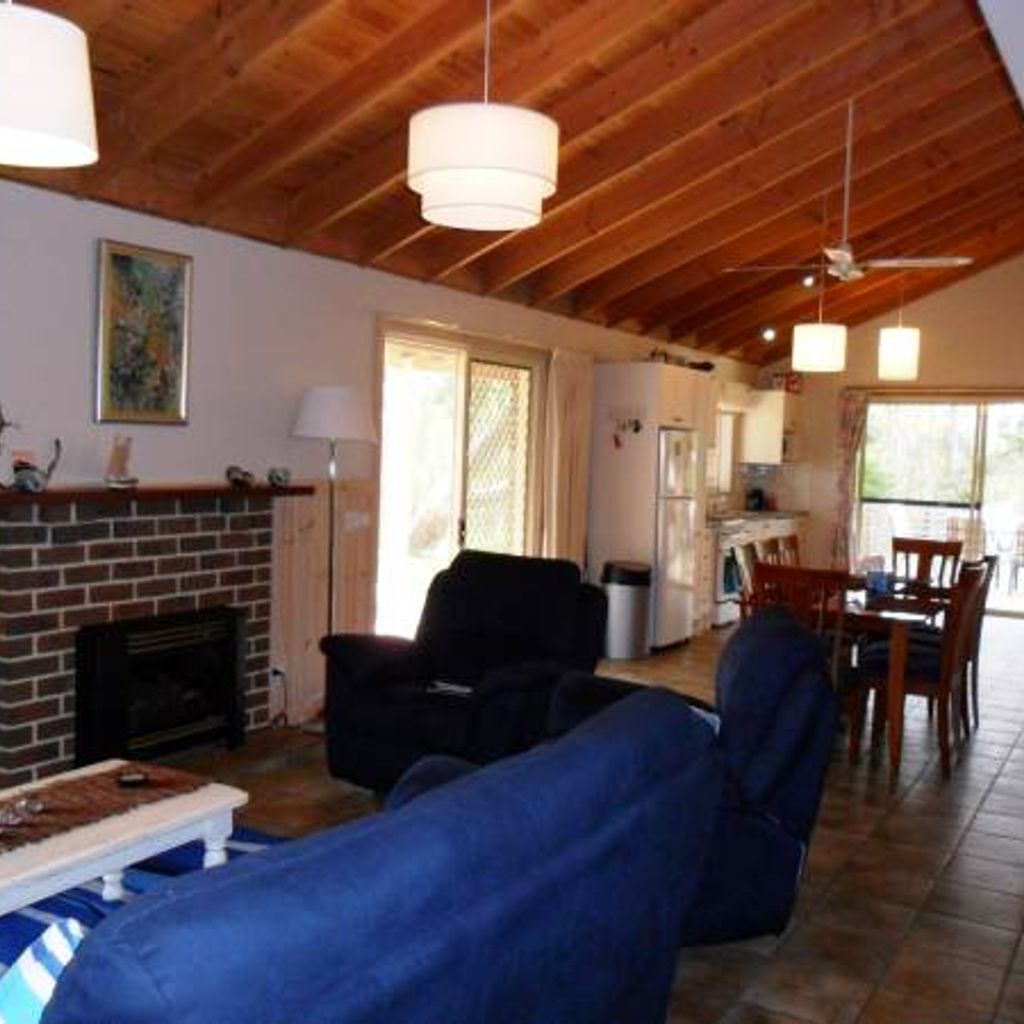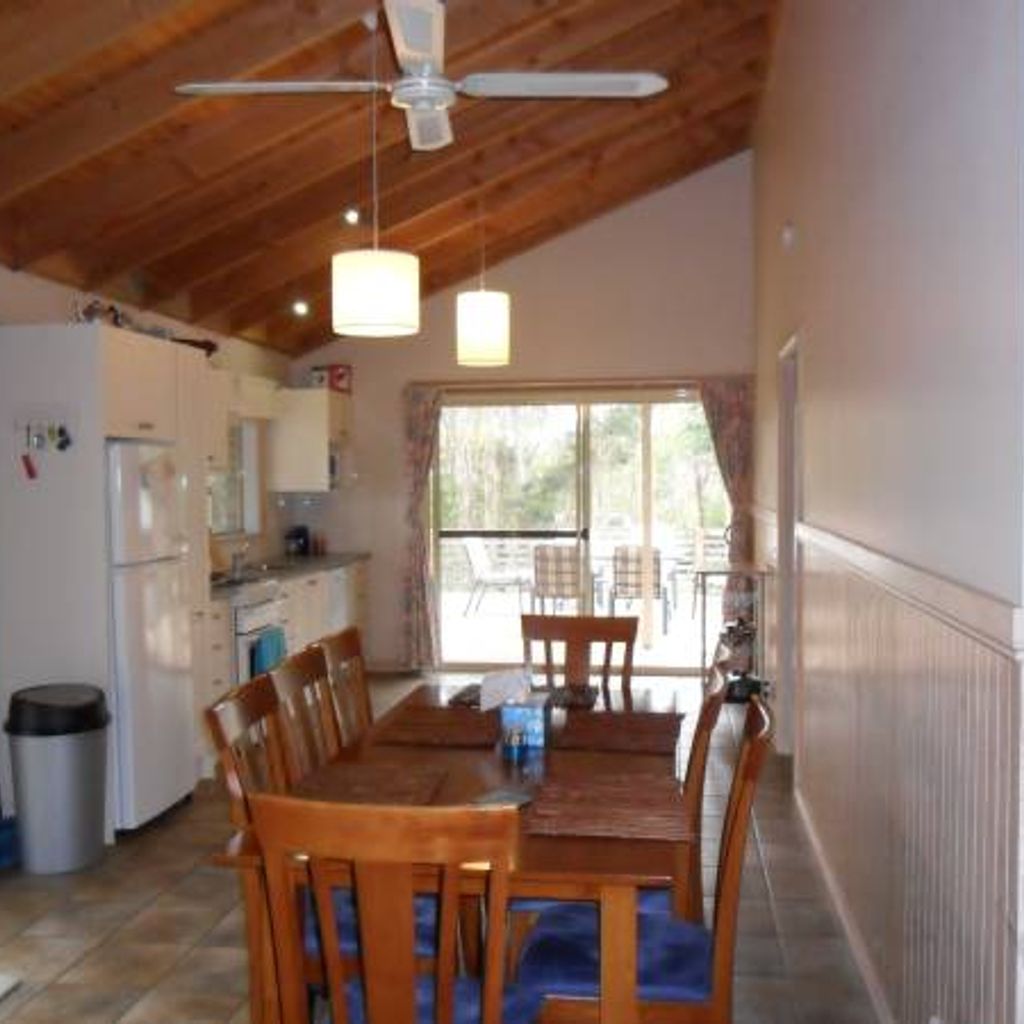 Open plan kitchen/dining/living, kitchen with microwave, dishwasher and electric cooking appliances. A dining setting for 8, living area with 42 LCD flat screen TV, DVD/Radio/iPod Player & gas heating and split system.