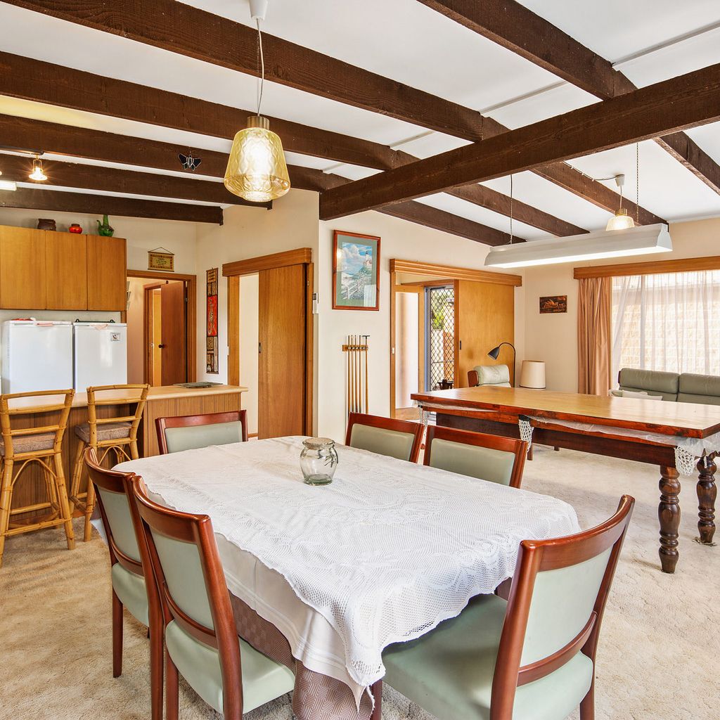 Large open plan dining, lounge area has a Tv, Dvd, split system air conditioning and heating. There is also a pool table for the family to enjoy during their stay.