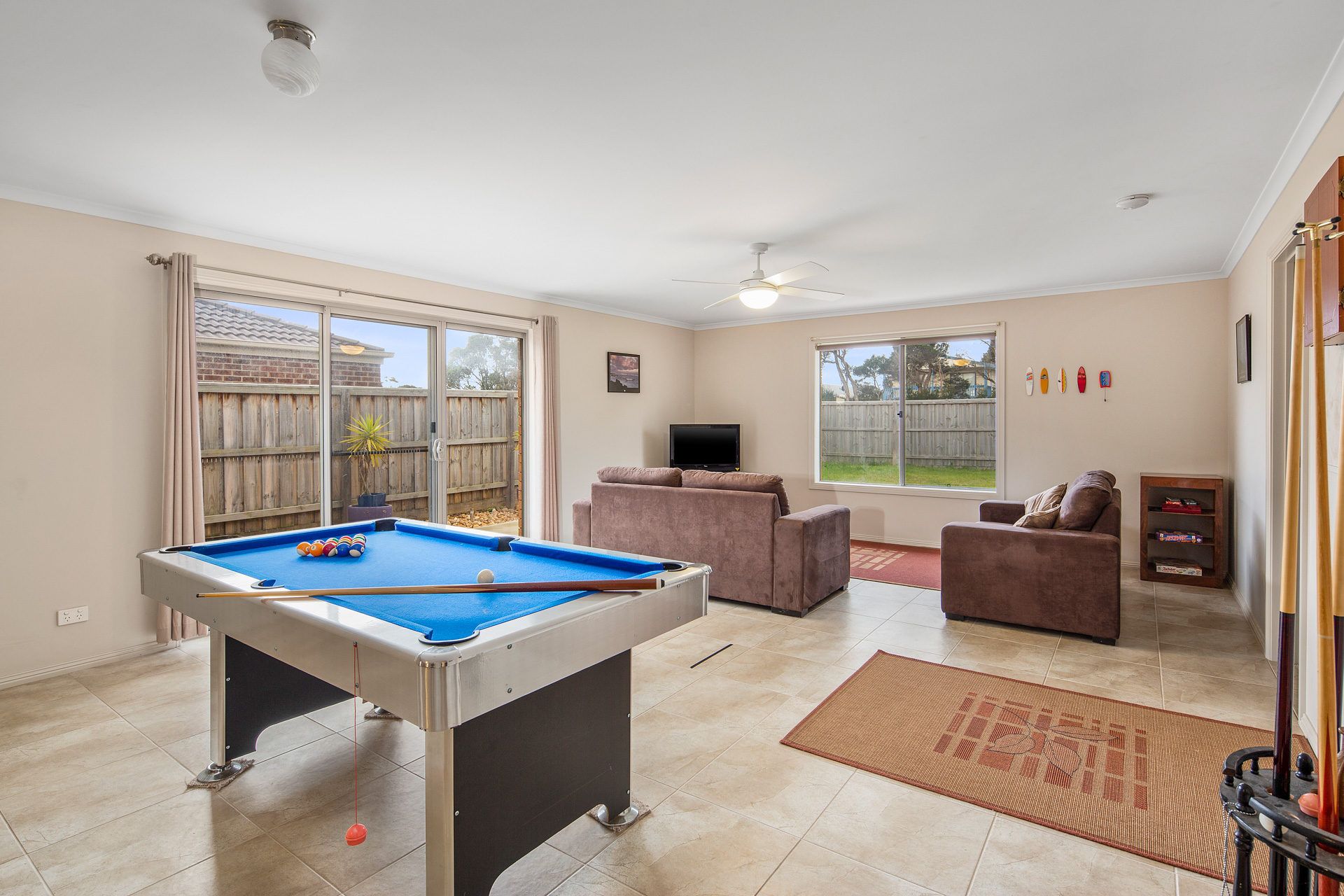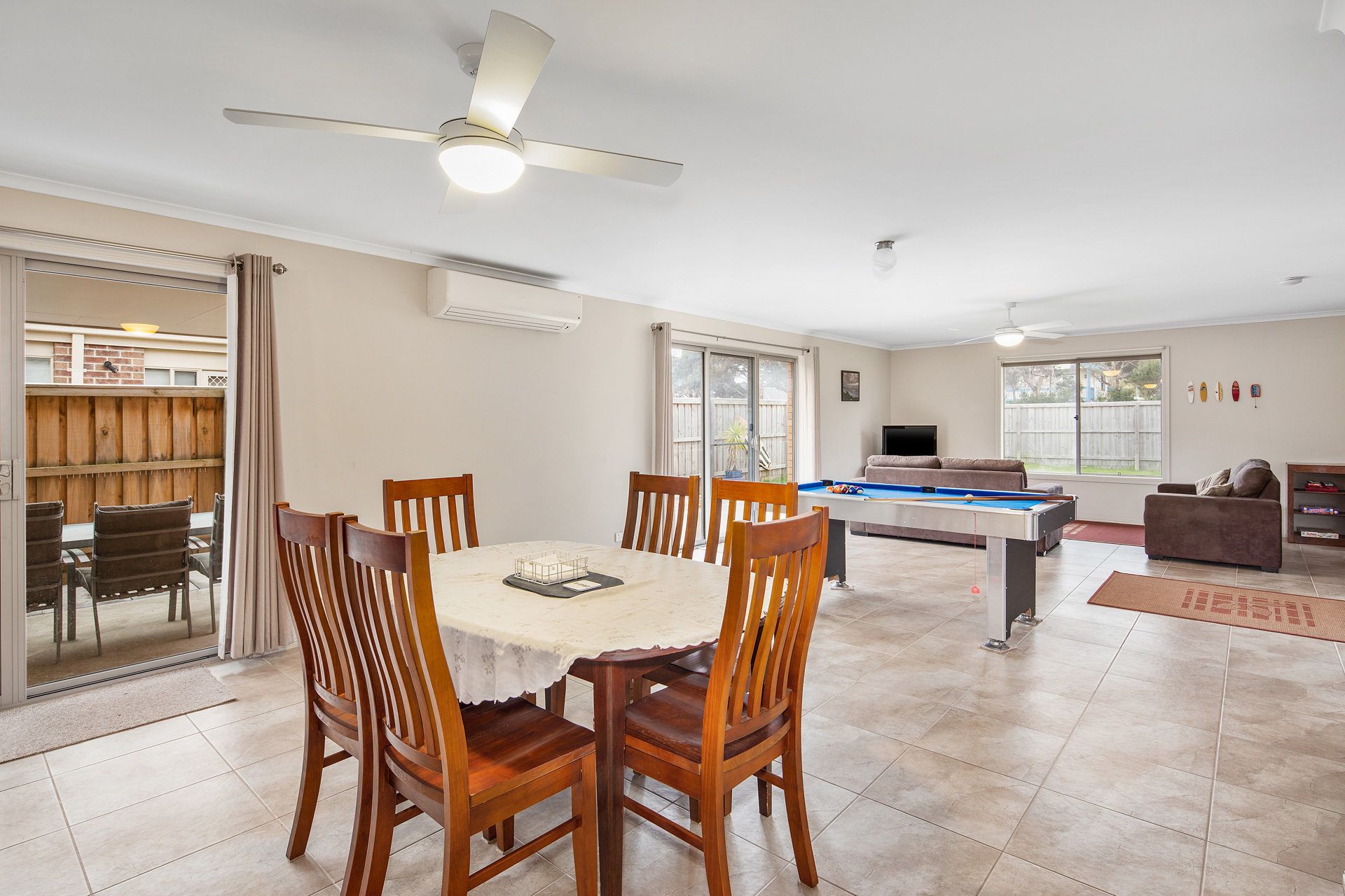 Following on from the kitchen dining area is the entertaining area which features a pool table, TV, DVD player and lounge suite. Plenty of room for the kids to amuse themselves. This area looks out over the backyard. There is also another reverse cycle split system in this area.
