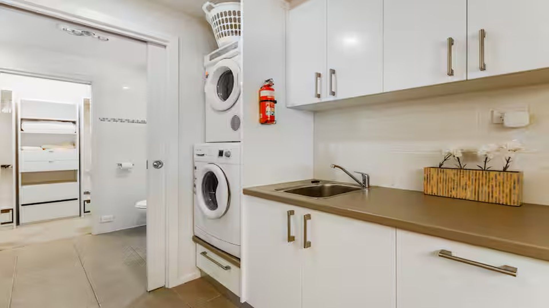Laundry includes top of the range 8kg washing machine, 7kg condenser tumble dryer with complimentary washing powder.