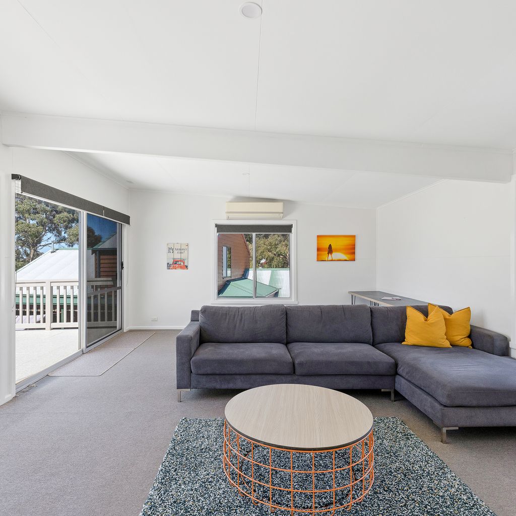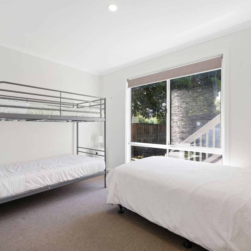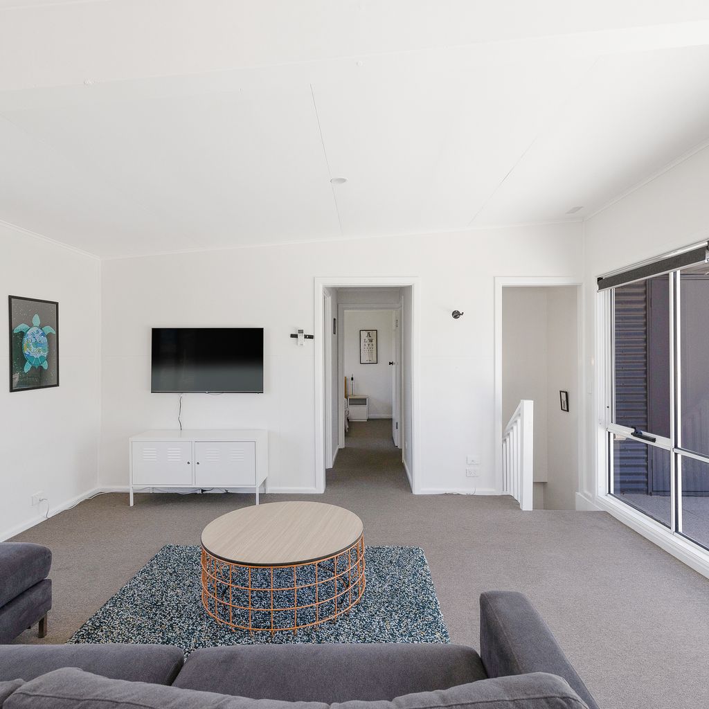 This double story retreat features four bedrooms, each thoughtfully designed for comfort. Downstairs, bedroom 1 offers a queen bed, while bedroom 2 is perfect for the kids, offering one bunk-bed & one single bed. Bedrooms 3 & 4 are located upstairs both offer a cosy queen-sized haven.