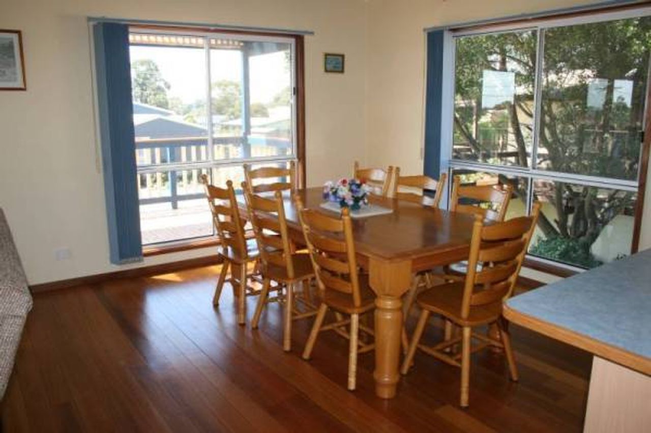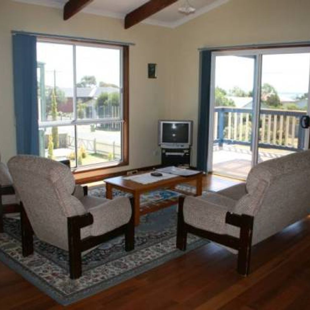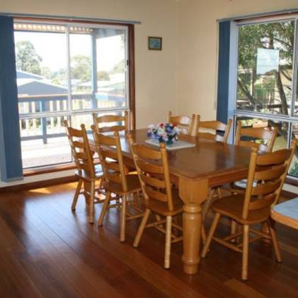 This three bedroom holiday home is only a short stroll to Cowes township, restaurants, shops and beach. The main living is upstairs and is open plan living the kitchen and dining and doors leading out to a great deck. The lounge has comfortable sofas TV and DVD player there is gas heating and ceiling fans.