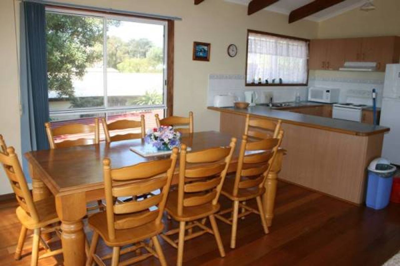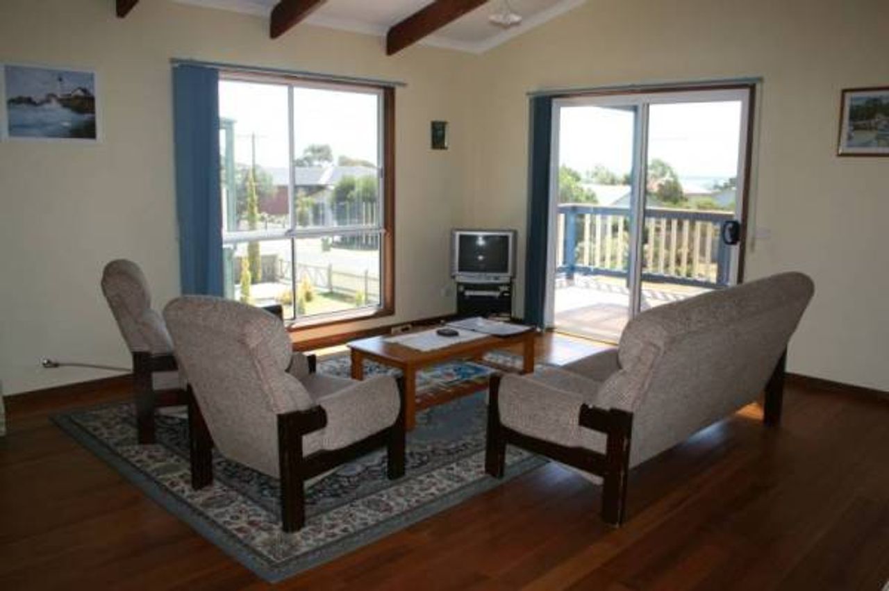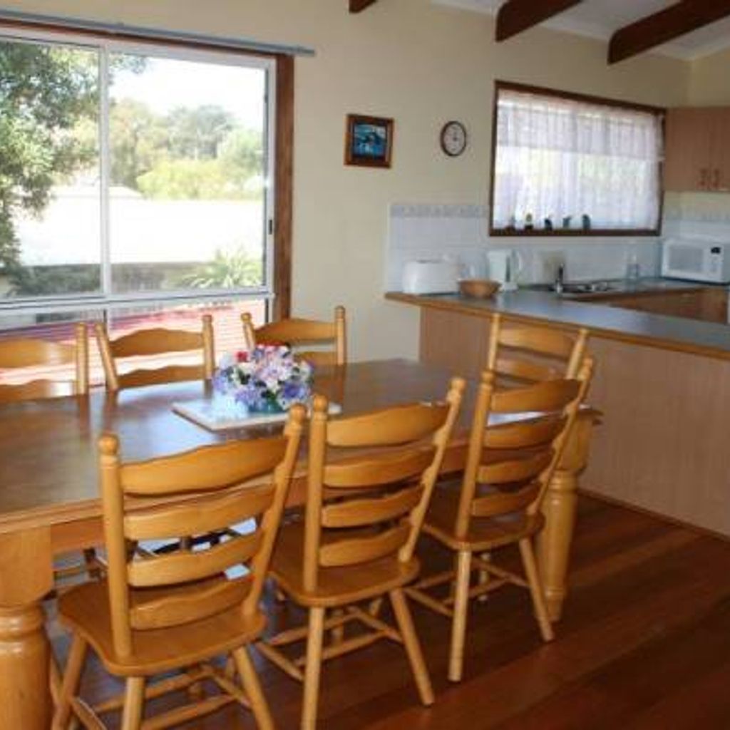 This three bedroom holiday home is only a short stroll to Cowes township, restaurants, shops and beach. The main living is upstairs and is open plan living the kitchen and dining and doors leading out to a great deck. The lounge has comfortable sofas TV and DVD player there is gas heating and ceiling fans.