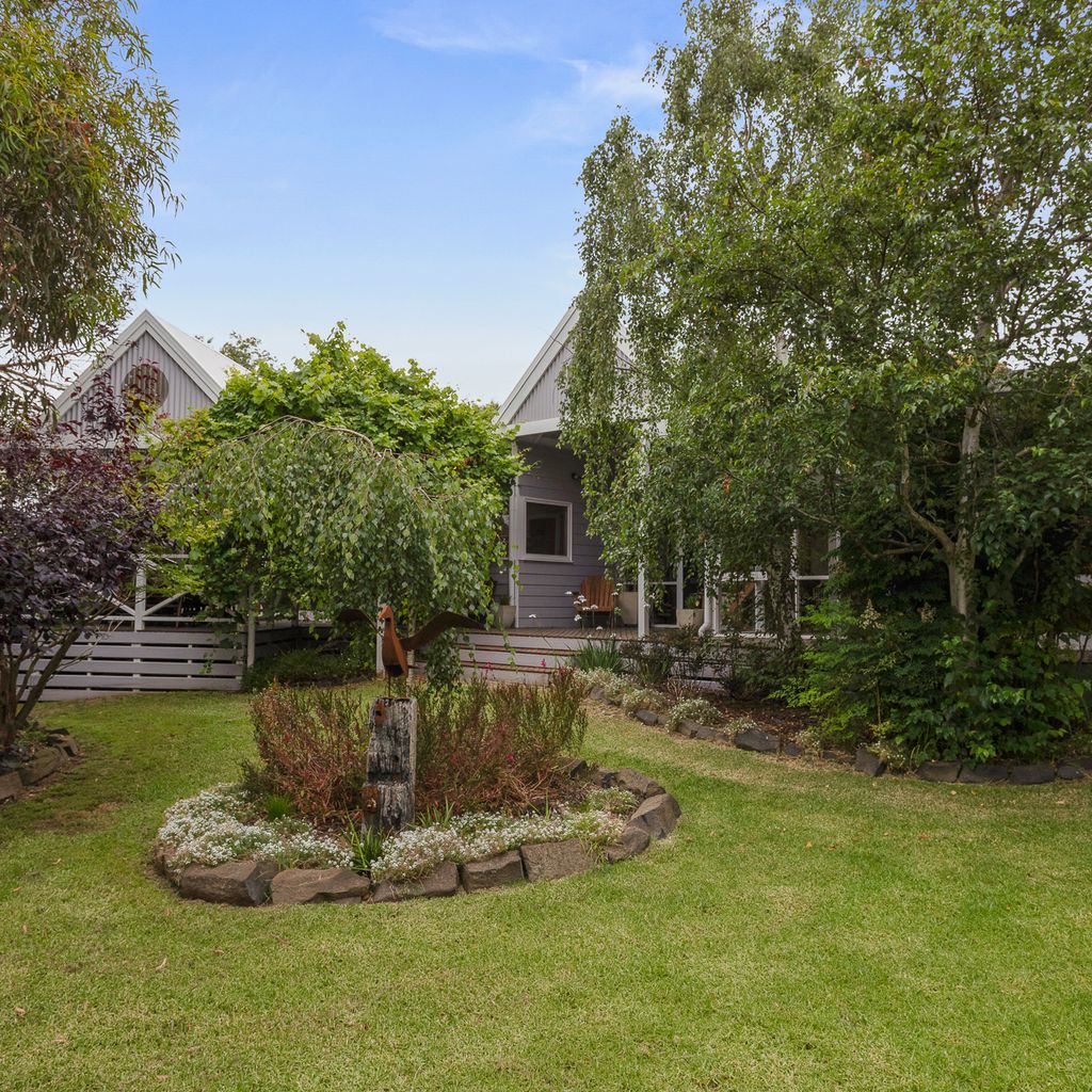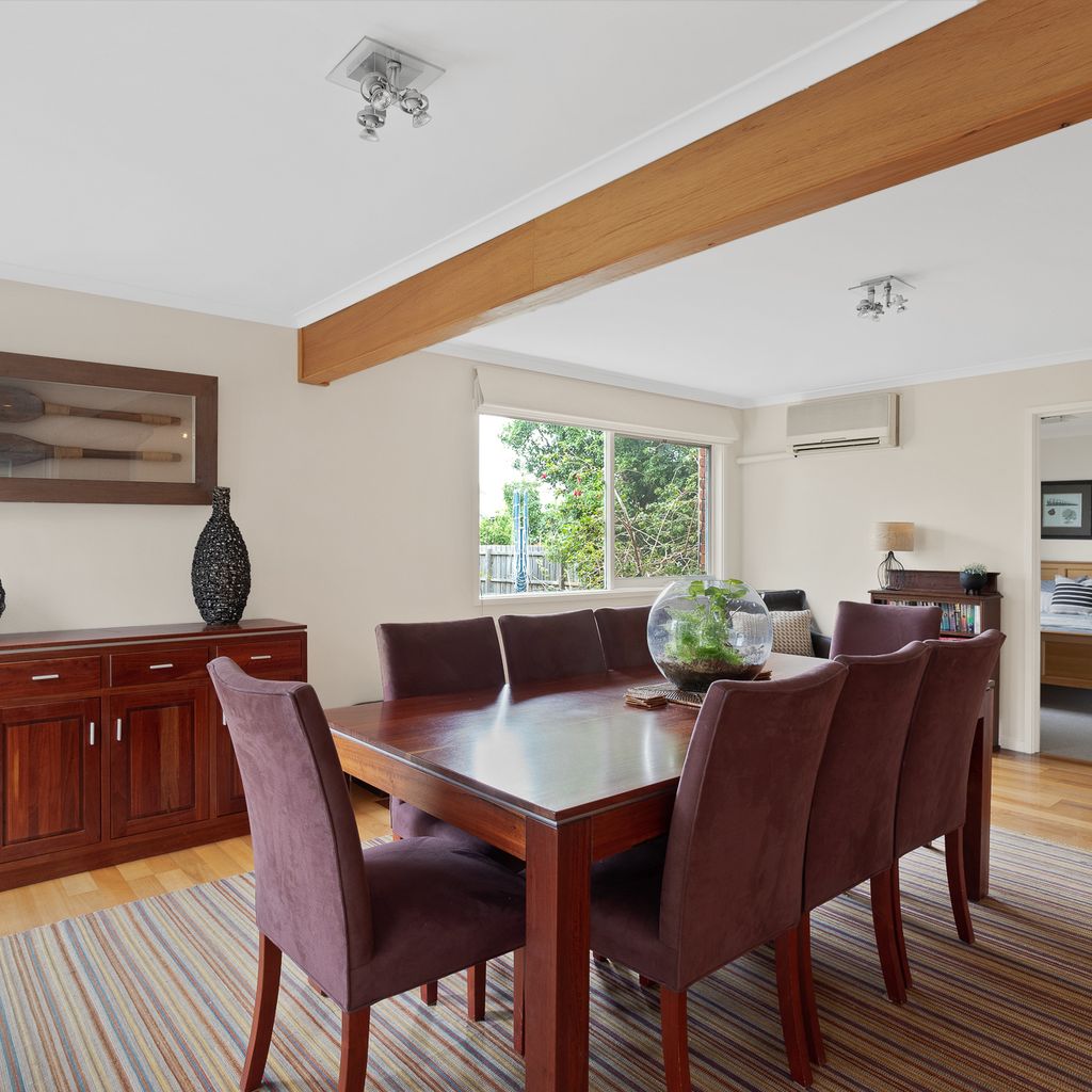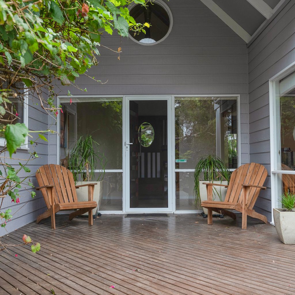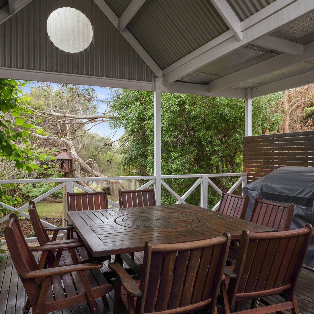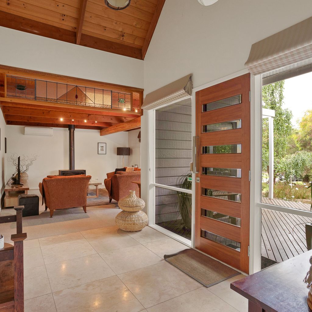With a second split system and a wood heater in the main lounge room with its comfortable sofas Smart Tv, DvD and stereo cd player your year-round comfort is guaranteed. The house is set in a lovely established garden with a huge outdoor entertaining deck, covered and sheltered, perfect for alfresco dining. The deck is accessed directly from the kitchen dining area.