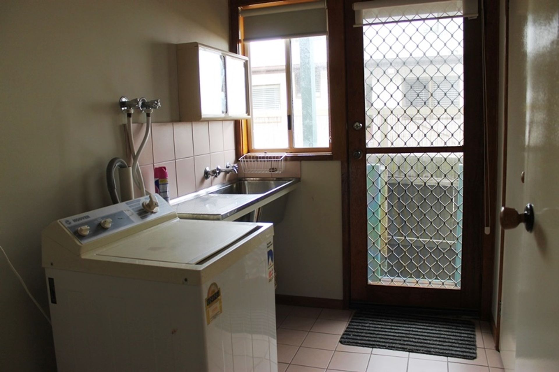 There are three bedrooms and one bathroom. The bathroom is accessed directly from the master bedroom as well as the lounge. The laundry has a washing machine, iron and ironing board.