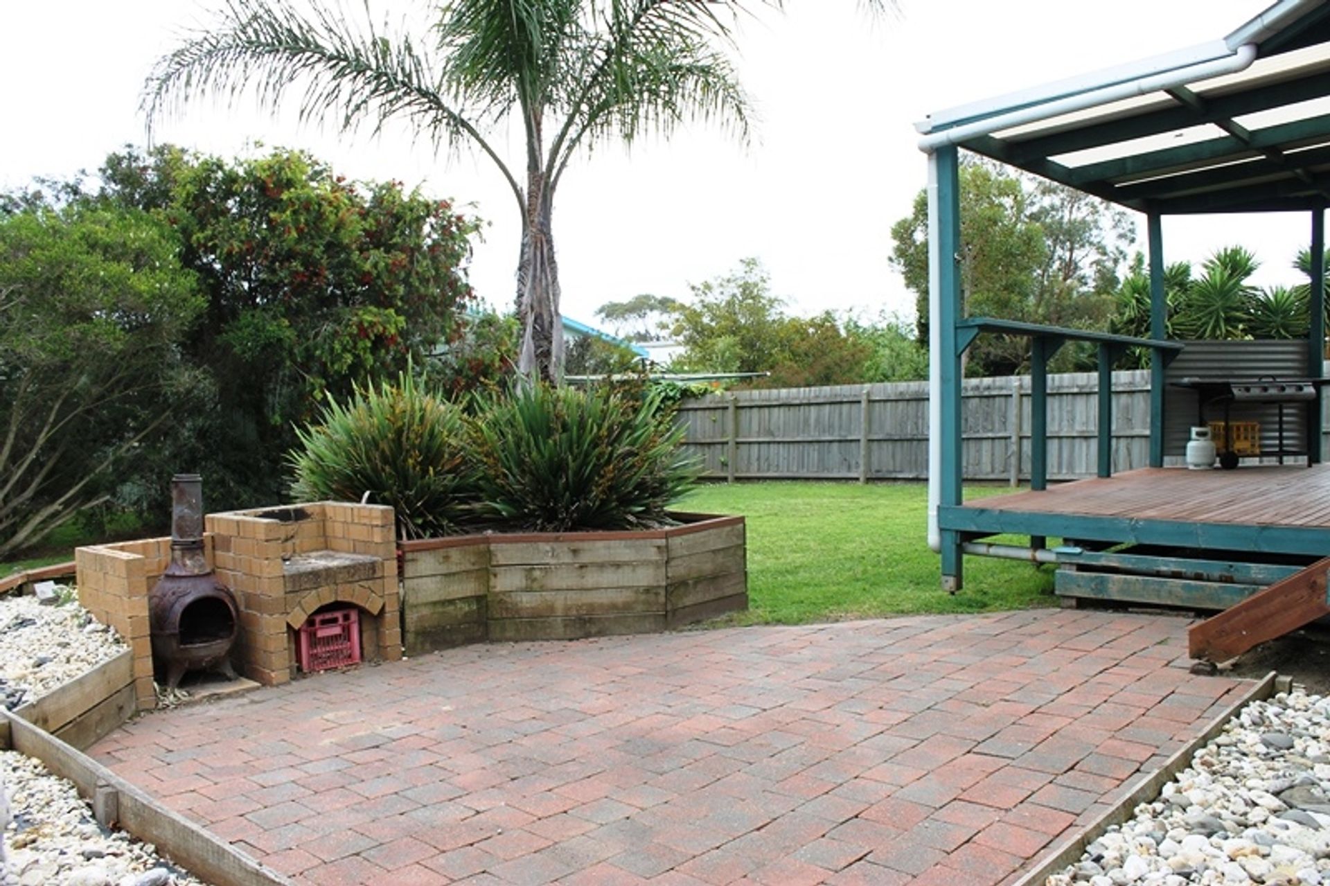 Sliding doors open on to the covered deck that looks out over the back garden, there is a gas bbq and outdoor setting a perfect spot for summer bbqs. Outside the garden is fully fenced and there is a wood bbq and a chiminea fire.
