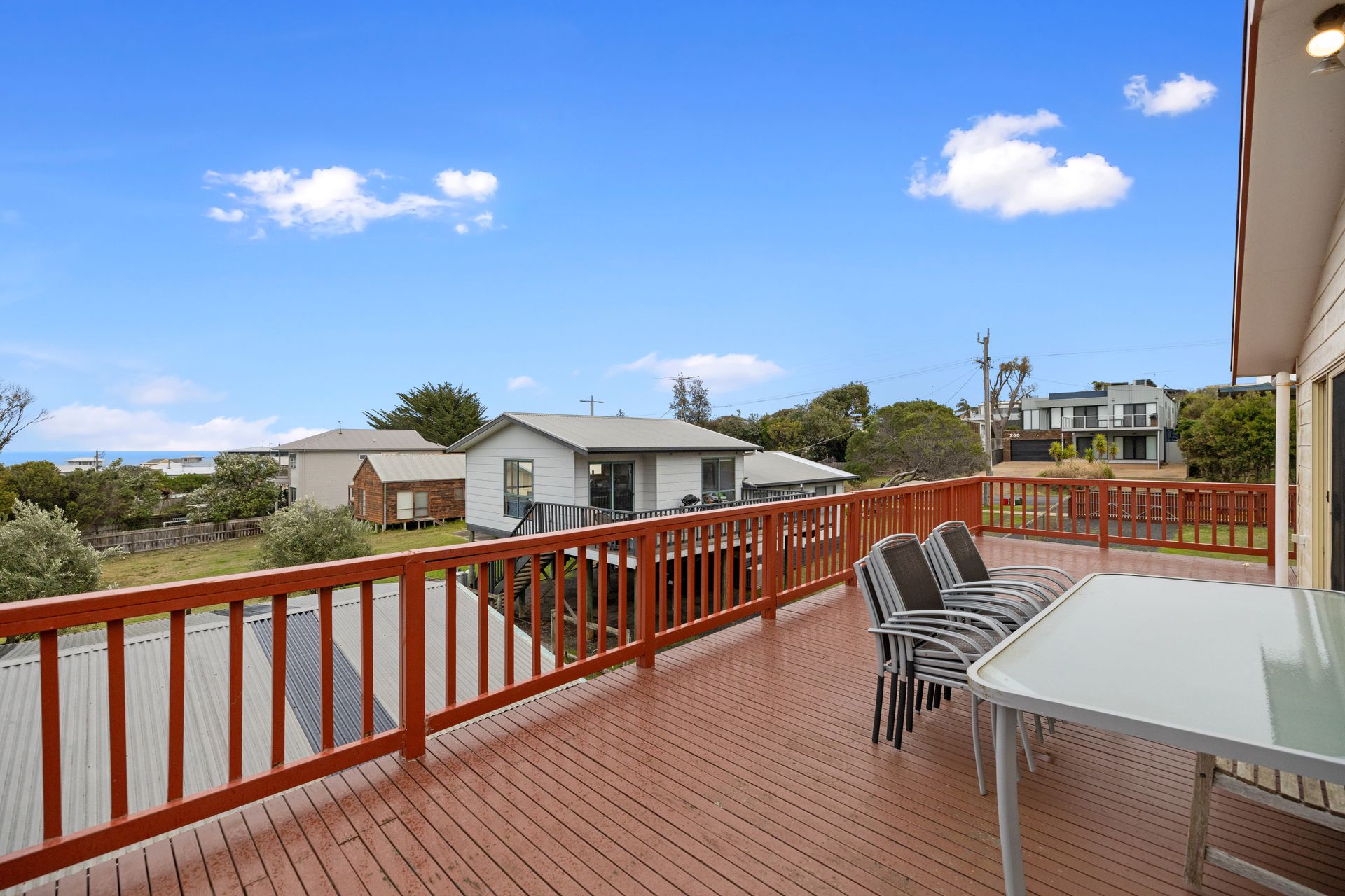 The house has amazing ocean views from the balcony which has a BBQ and 10 seater dining table. The property has a large front yard and fully fenced grounds and is just a short walk to shops and Smiths Beach.