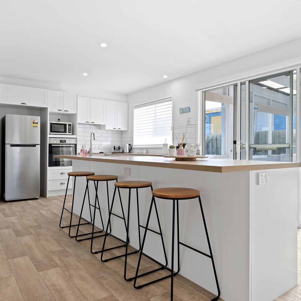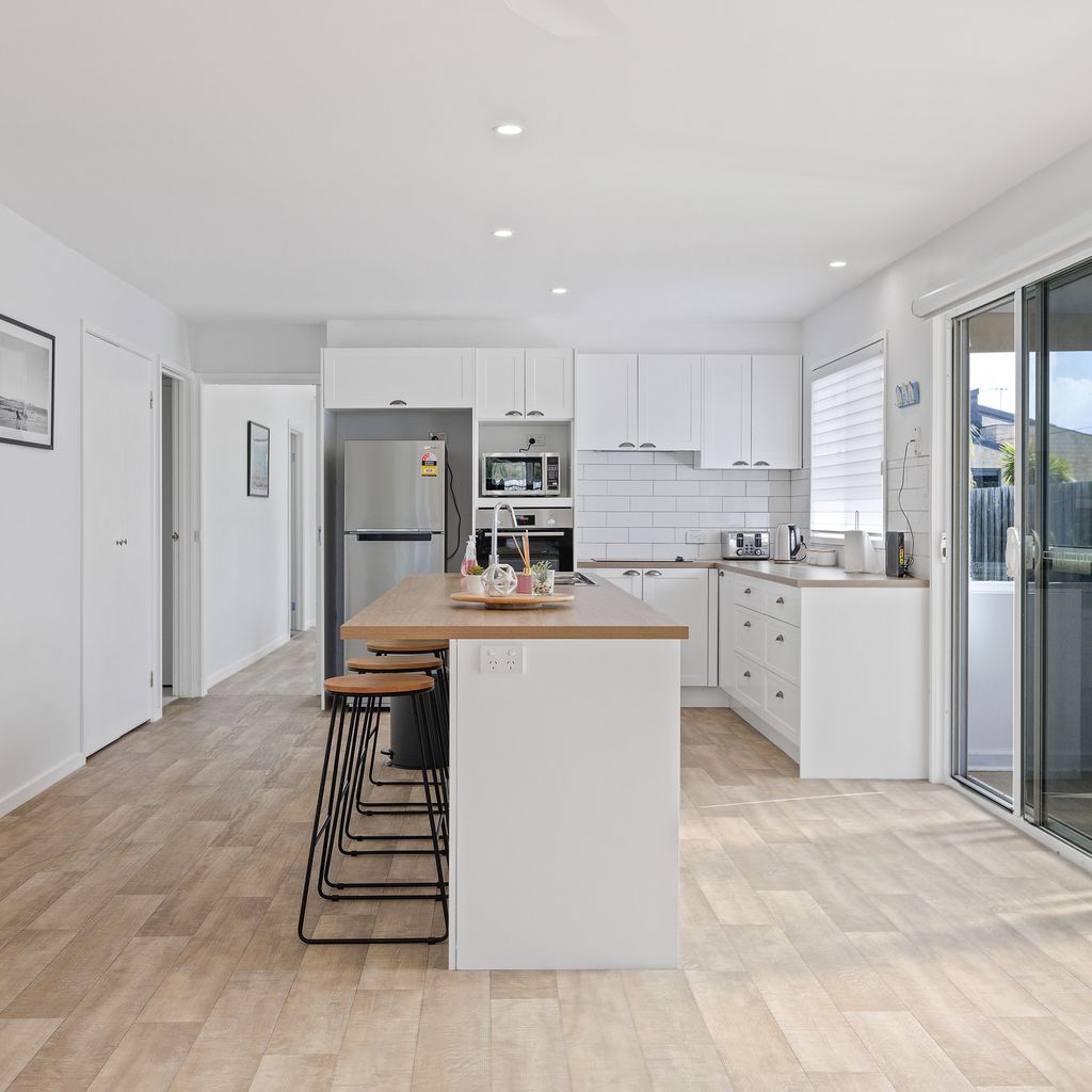 The kitchen is well equipped with all you will need to cook for a family and the inclusion of a dishwasher makes clean up a breeze. There is also a microwave and electric cooking appliances. The main lounge area has a large tv and sound bar, the large corner couch makes this the perfect place for watching a movie. Free wifi is also included.