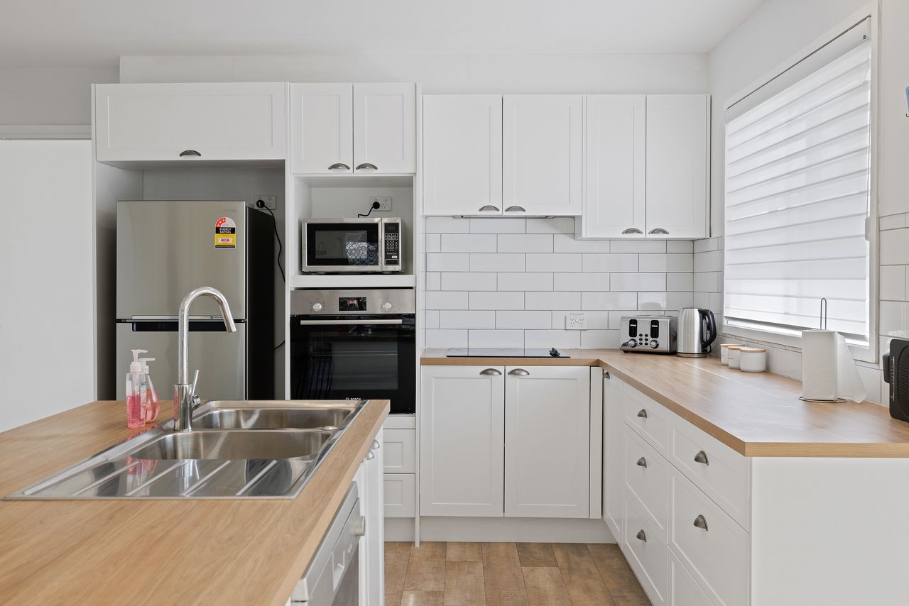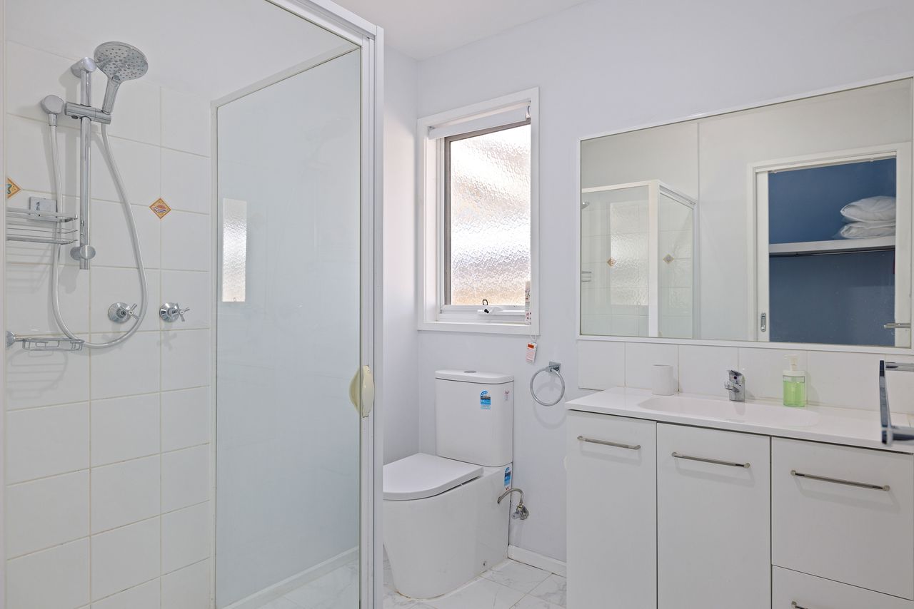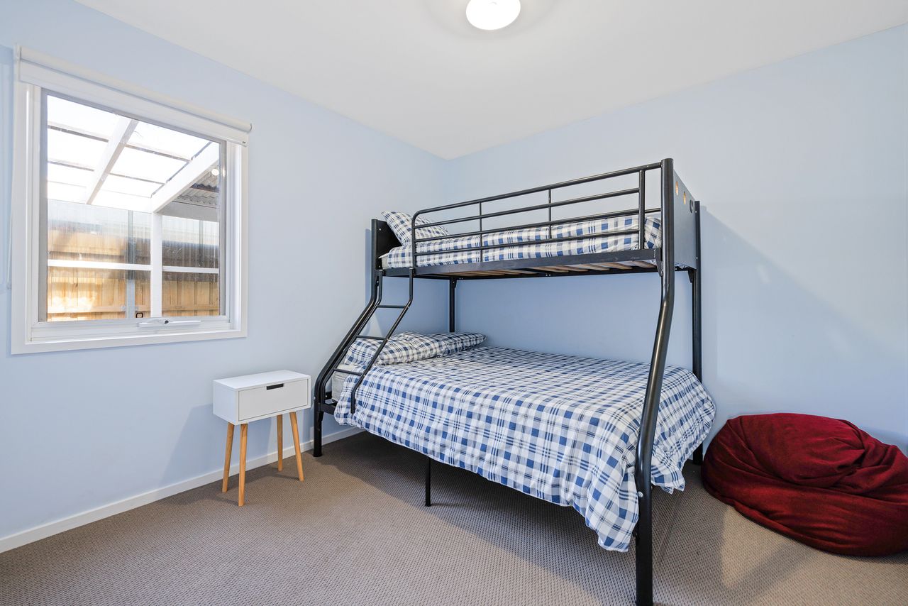 The 2nd bedroom consists of a tri-bunk (double on bottom, single on top) and the 3rd bedroom has a double bed as well as a ceiling fan. The main bathroom includes a bath and the toilet is separate. The laundry is complete with washing machine for your convenience.