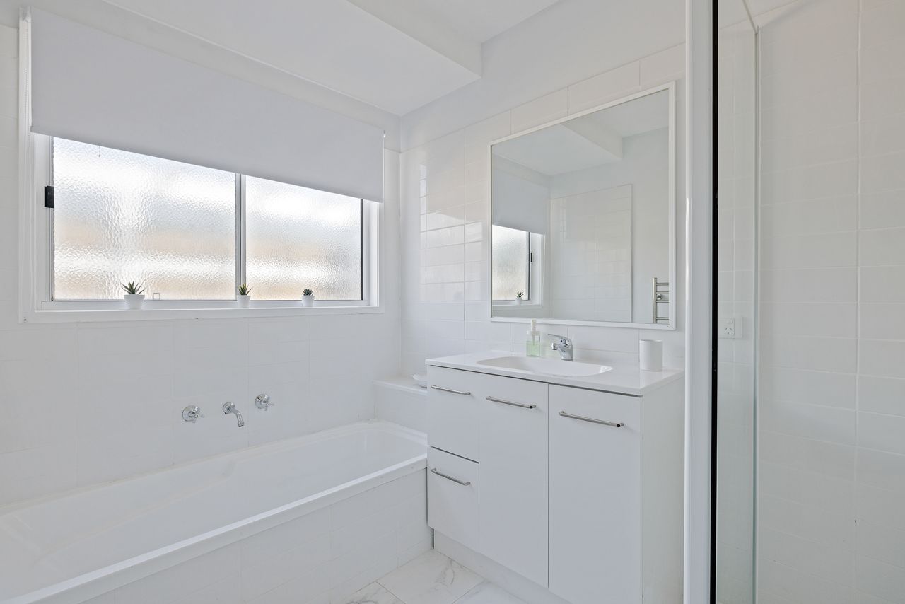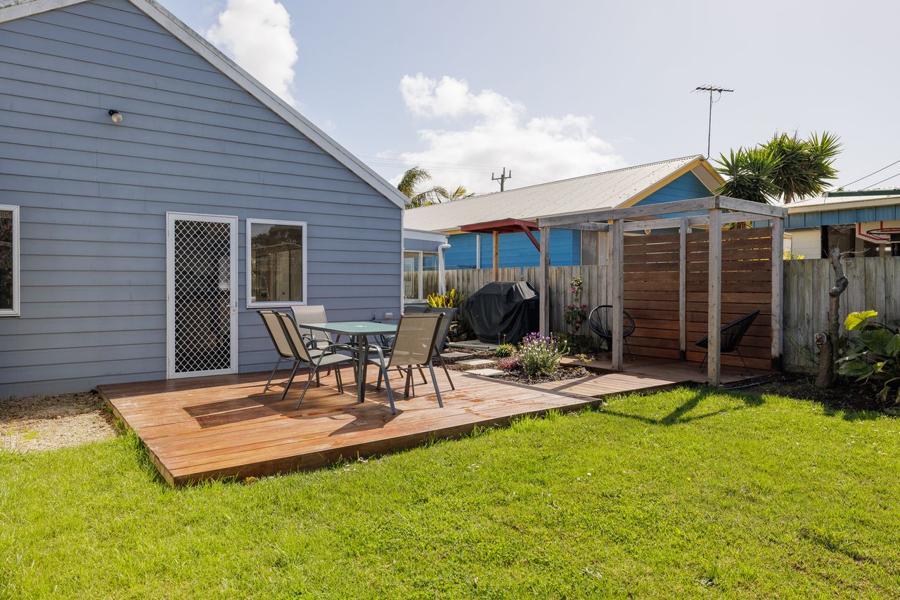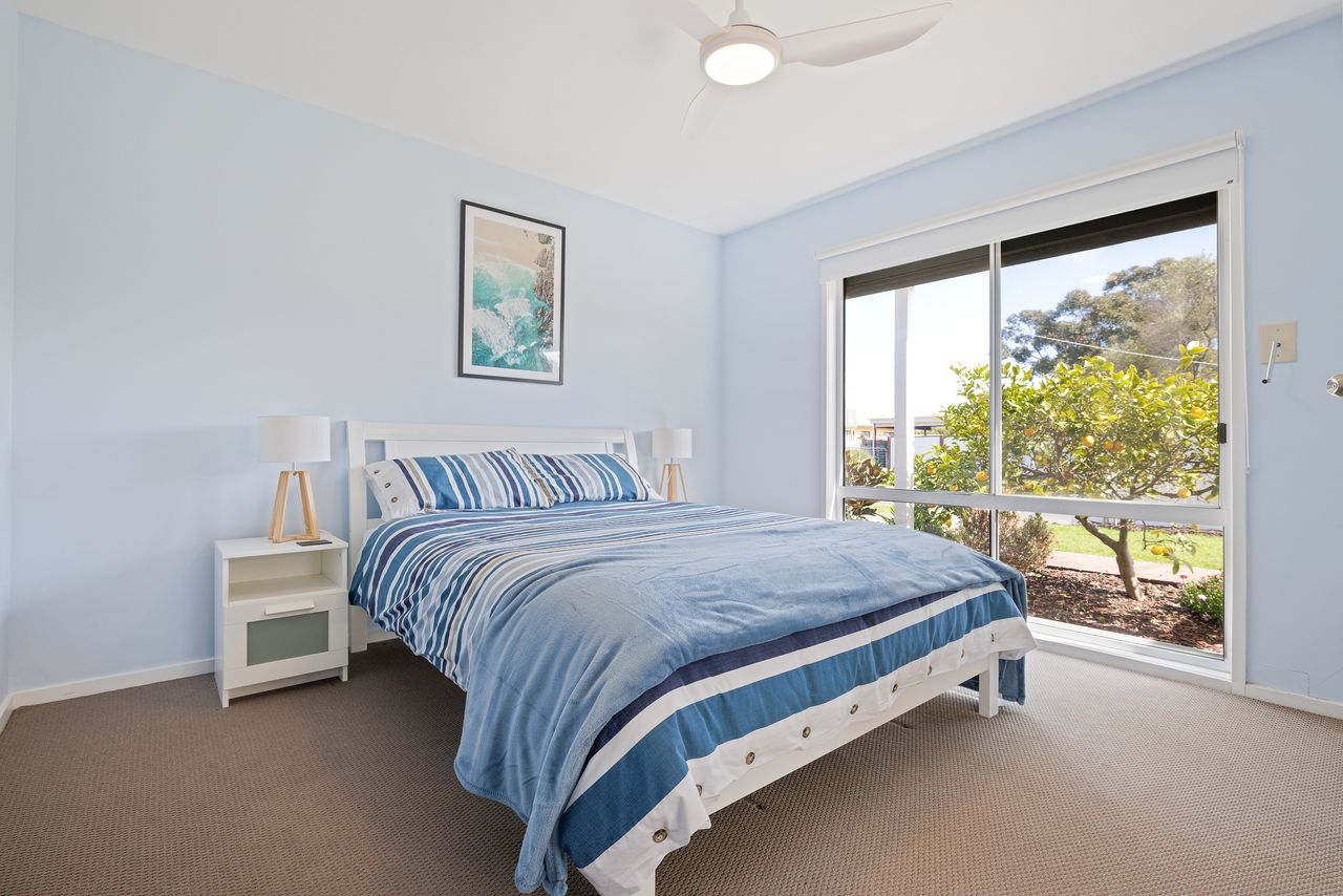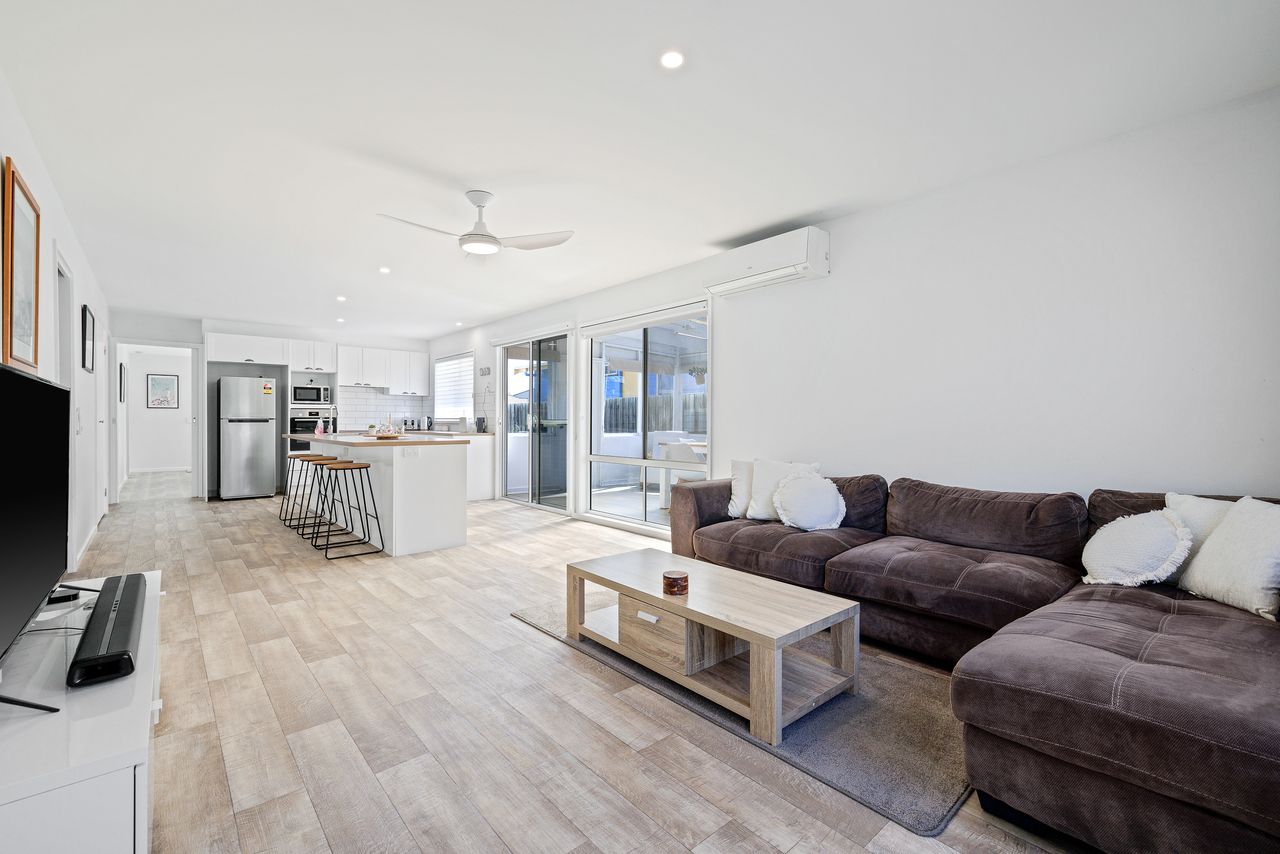 The 2nd bedroom consists of a tri-bunk (double on bottom, single on top) and the 3rd bedroom has a double bed as well as a ceiling fan. The main bathroom includes a bath and the toilet is separate. The laundry is complete with washing machine for your convenience.