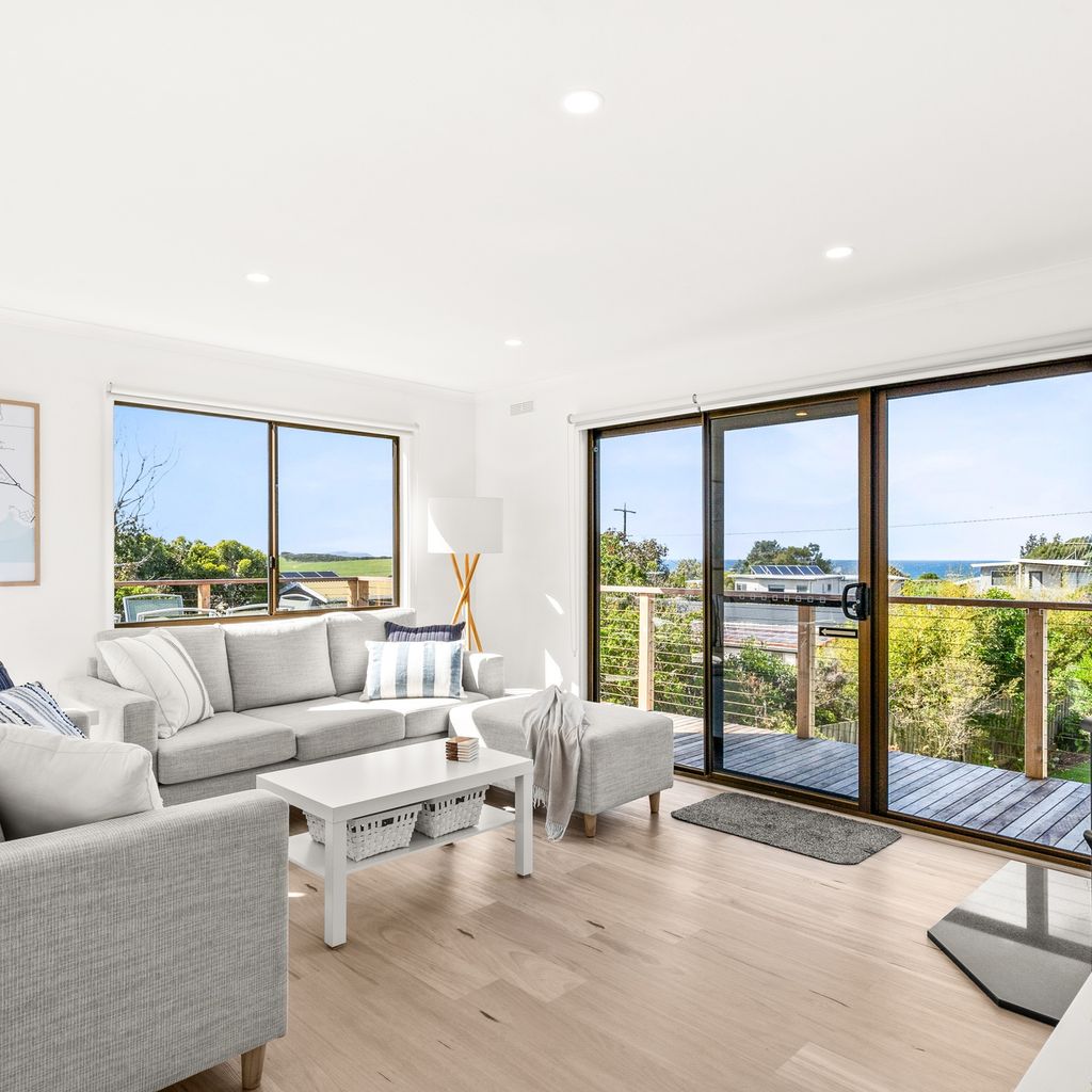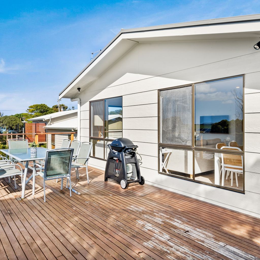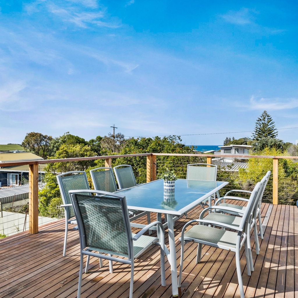 Boasting surrounding views is this comfy, cosy, beach house. Access the massive wrap around balcony, overlooking the ocean to the south and the countryside to the east from 3 sides of the house. Lay in bed at night and listen to the waves! And, it's just a short stroll to the beach and local shop, minutes drive to the GP track and 15 minutes drive into Cowes for some shopping or restaurants. This property is perfect for a relaxing summer holiday or visit to see the many track events.