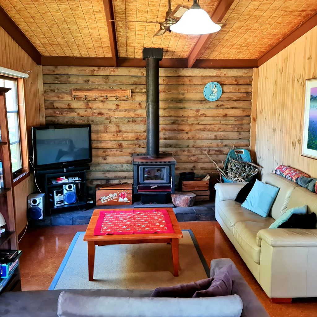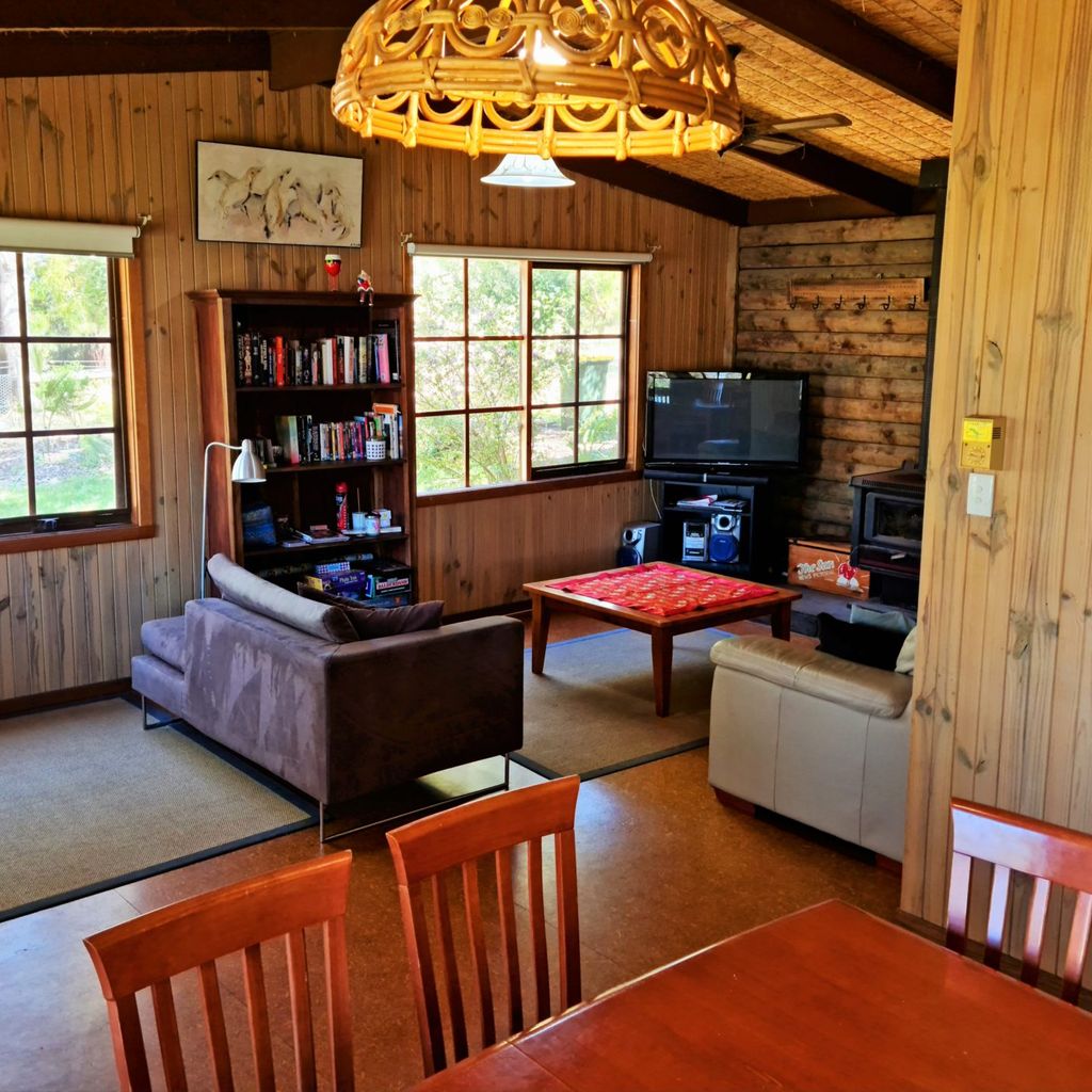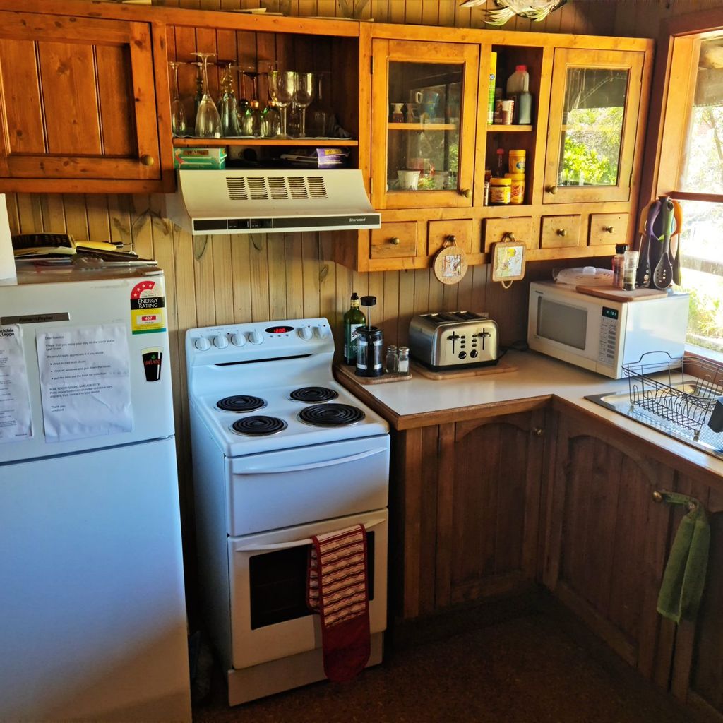 The lounge has new sofas TV and DVD with a Coonara wood heater to keep you warm during the cooler months. The dining table is centrally located and the kitchen is well equipped with electric cooking and a microwave, as well as lots of salad bowls, platters etc.