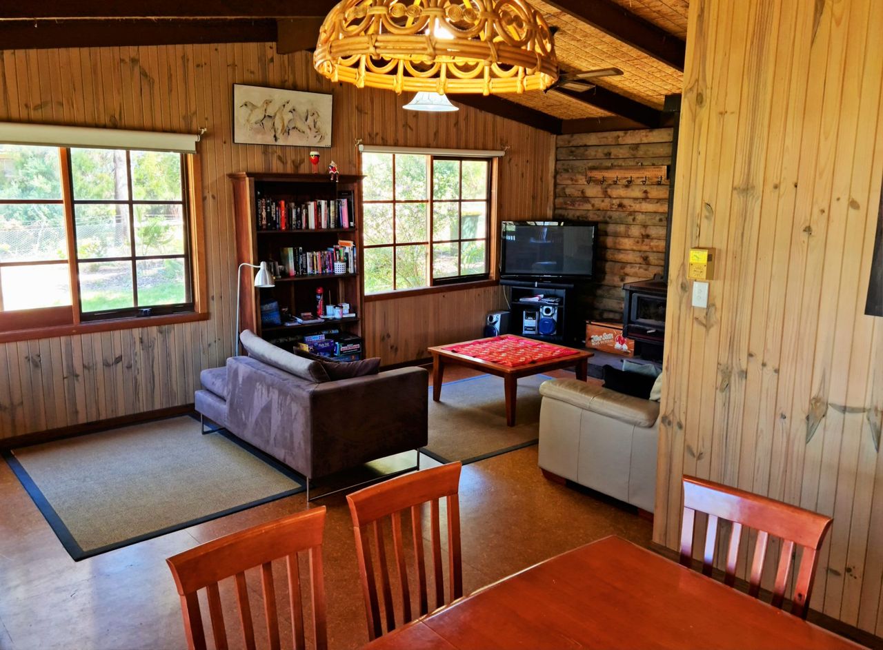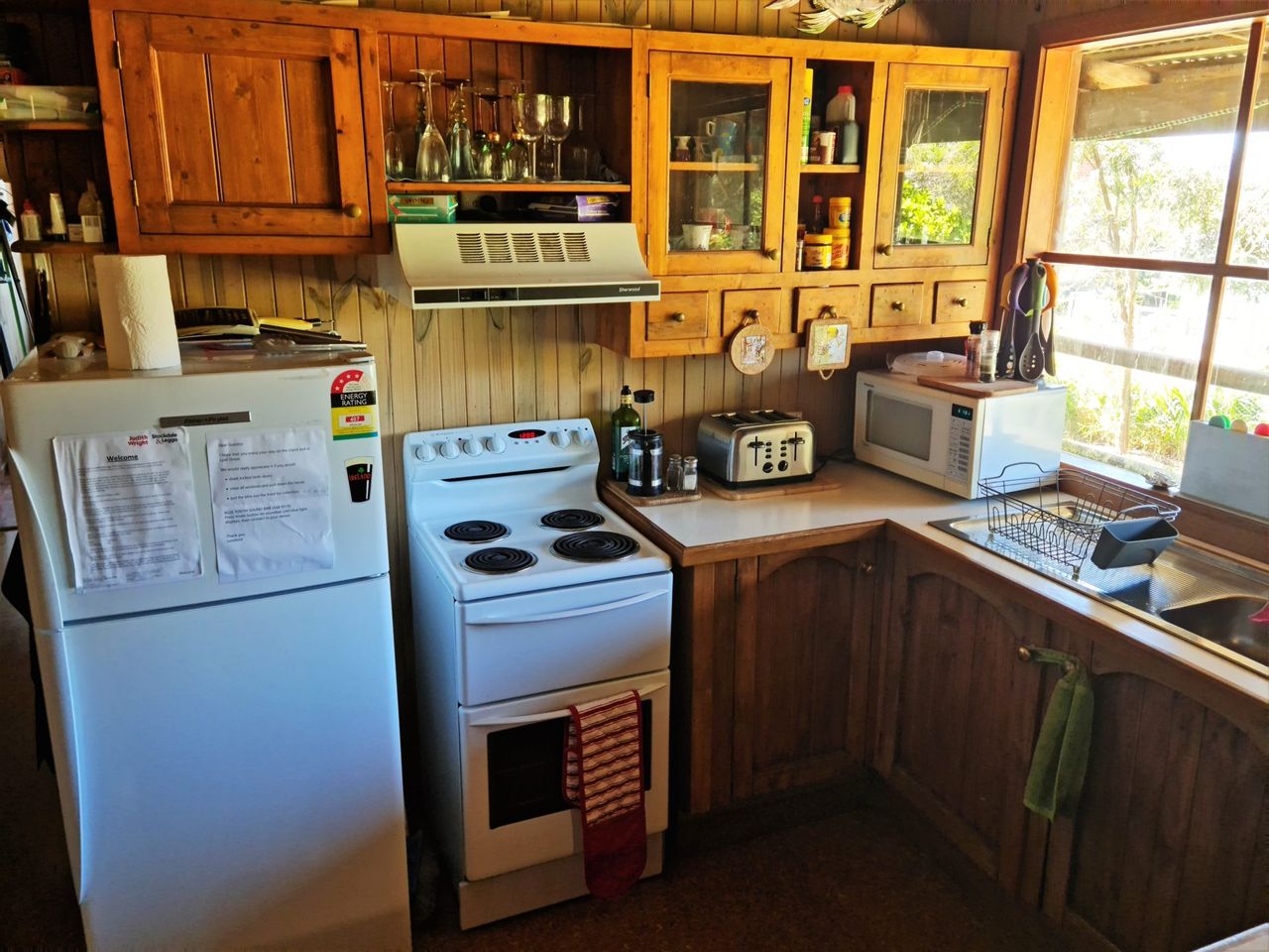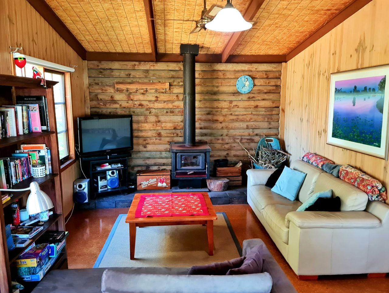 The lounge has new sofas TV and DVD with a Coonara wood heater to keep you warm during the cooler months. The dining table is centrally located and the kitchen is well equipped with electric cooking and a microwave, as well as lots of salad bowls, platters etc.