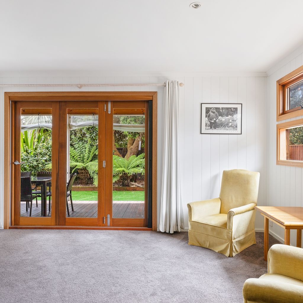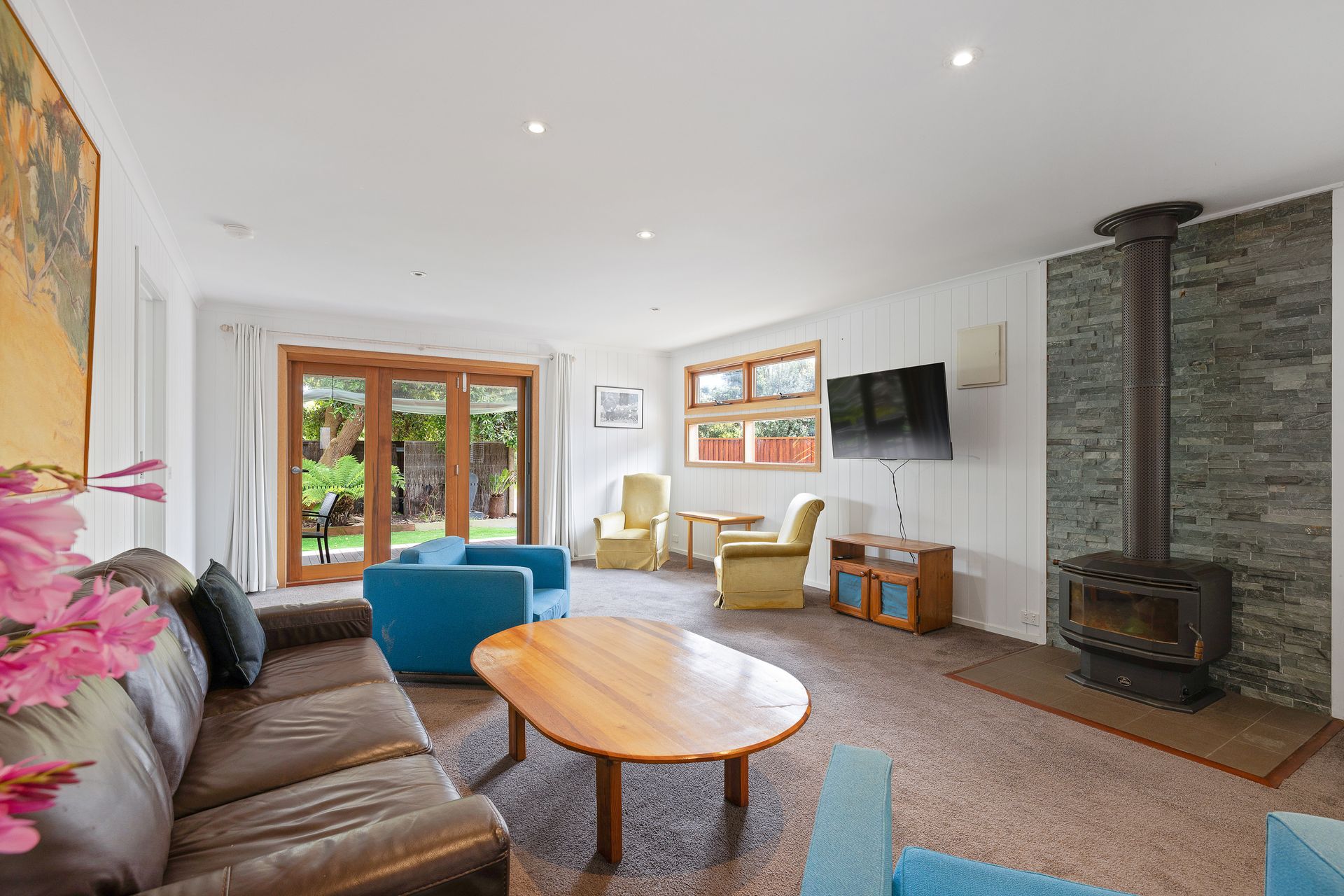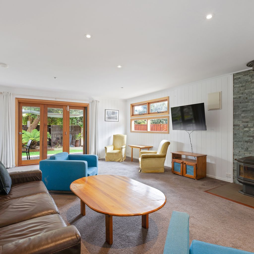 Bright open plan living and dining area, with reverse cycle air conditioning, flat screen Smart T.V, and free WIFI. A wood fire surrounded by a comfy couch and chairs to seat 7 guests for those cosy winter nights. Kitchen is fully equipped with filtered drinking water, a gas stove top, fridge, oven, microwave, toasty and all the kitchen amenities you would require.