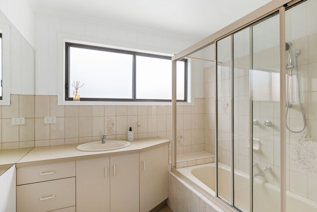 Main bedroom has an ensuite and includes bifold doors that open out to the deck. Enjoy that summer breeze while relaxing in bed. Second bedroom has a double bed, Third bedroom has two single beds with a reverse cycle, Fourth bedroom has a fold out couch with reverse cycle. The main bathroom has a combined shower and bathtub.