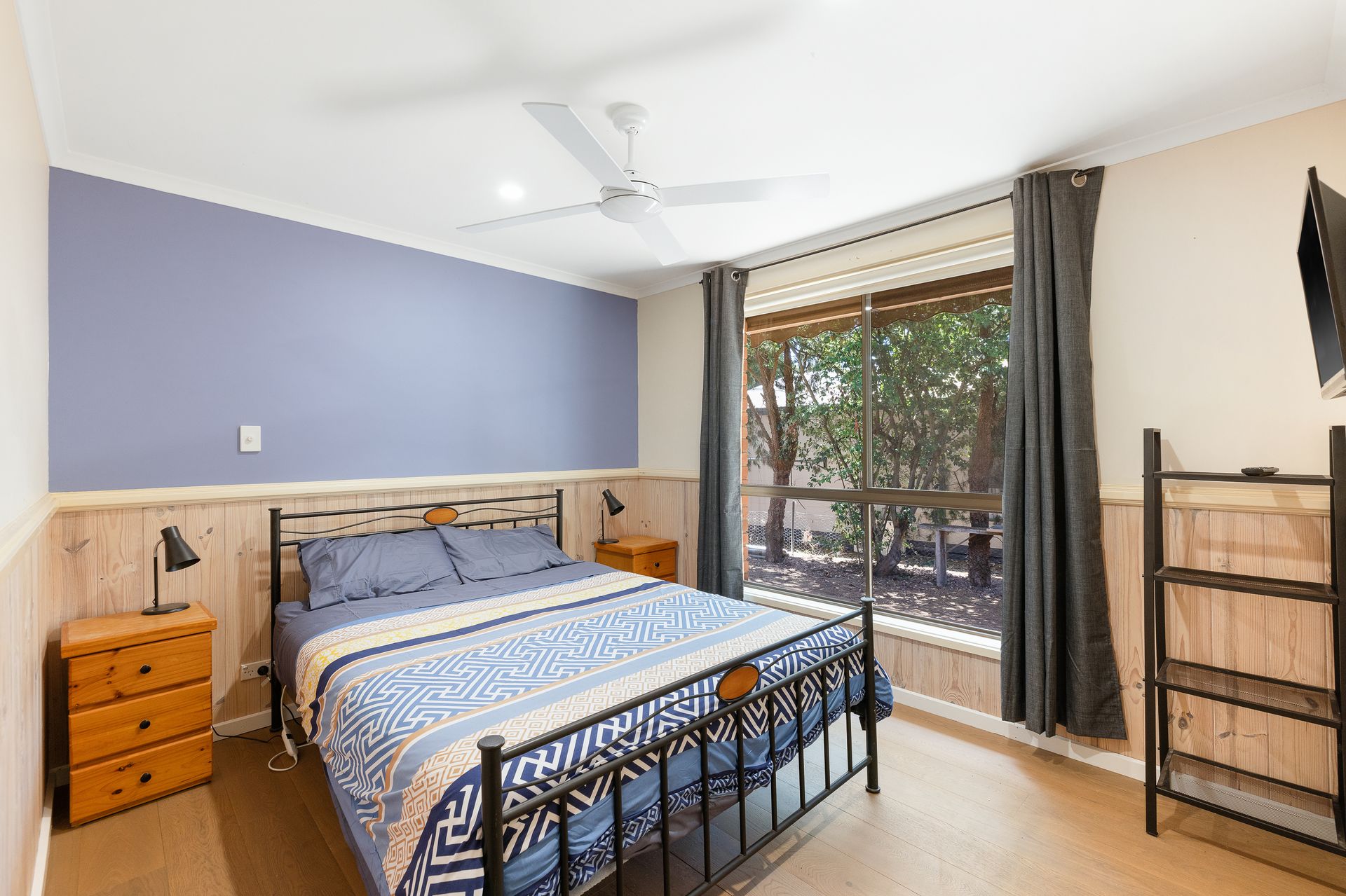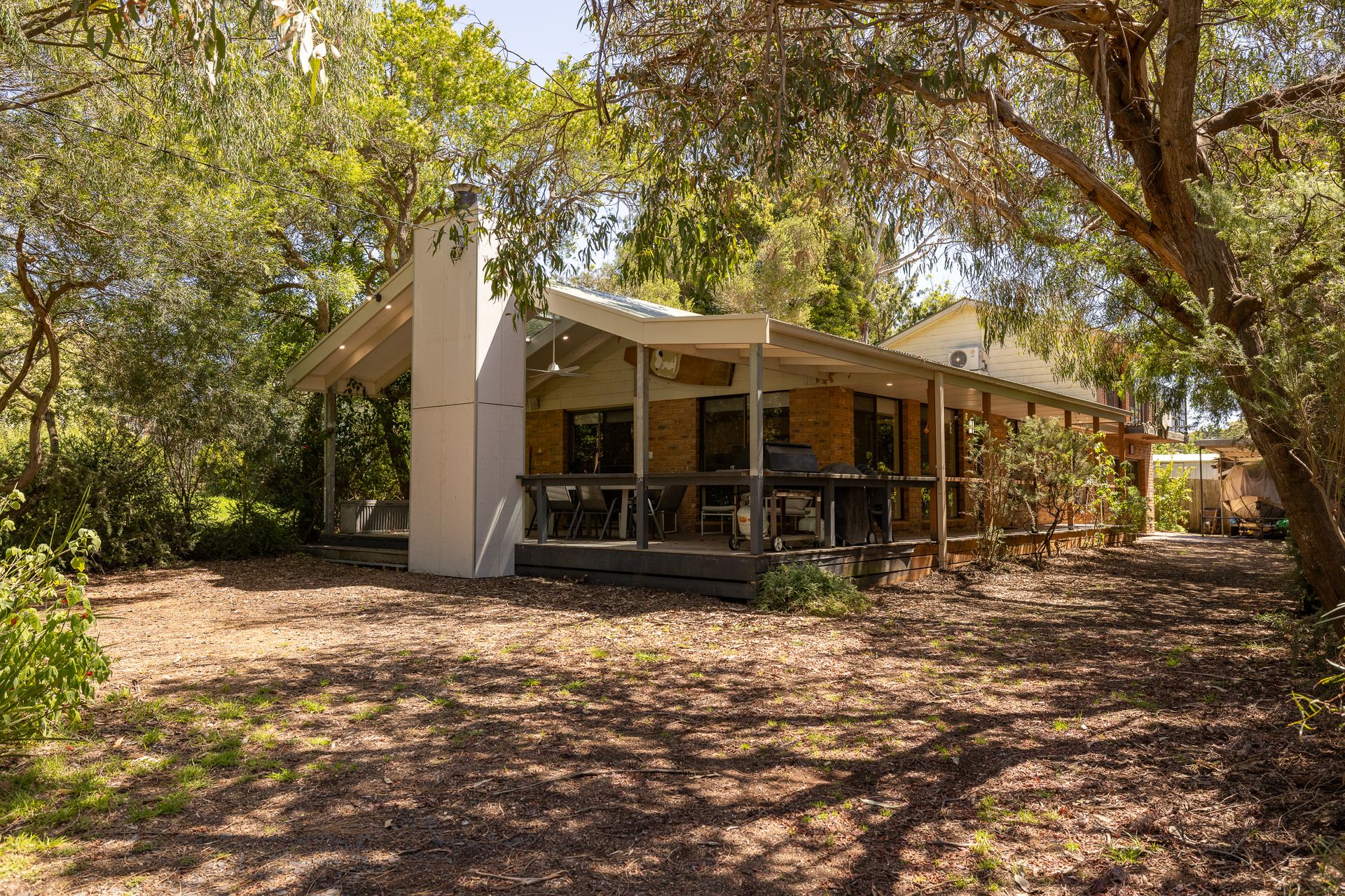 With its fireplace, reverse cycle air conditioning, open-plan kitchen lounge promoting a social atmosphere, allowing guests to interact while cooking, dining, or lounging. Or step out onto the huge undercover deck area and enjoy the vista of the treed yard.