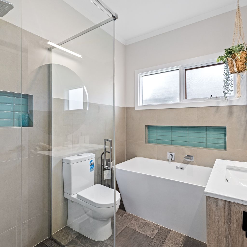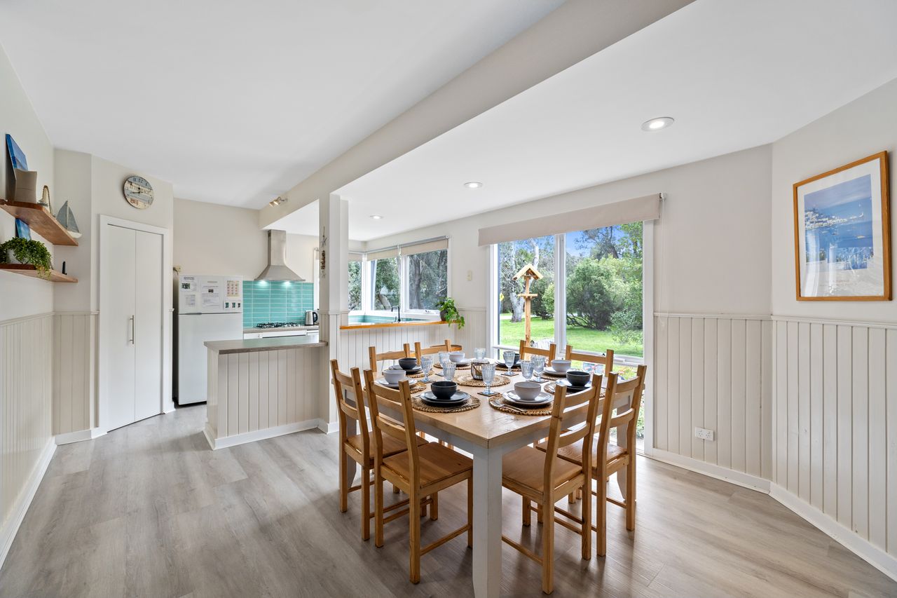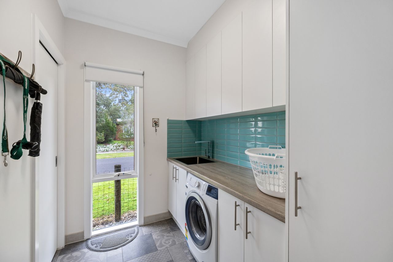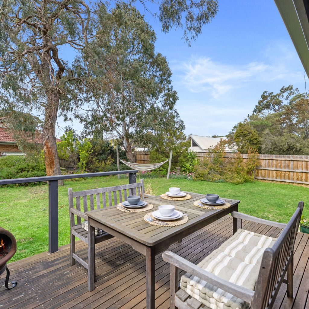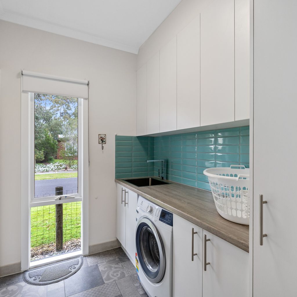 Equipped with a stereo and a flat-screen TV, the lounge effortlessly flows onto a deck complete with a gas barbecue and outdoor furniture, ideal for delightful alfresco meals. From here, you can overlook the securely enclosed backyard, allowing you to supervise your children's playtime.