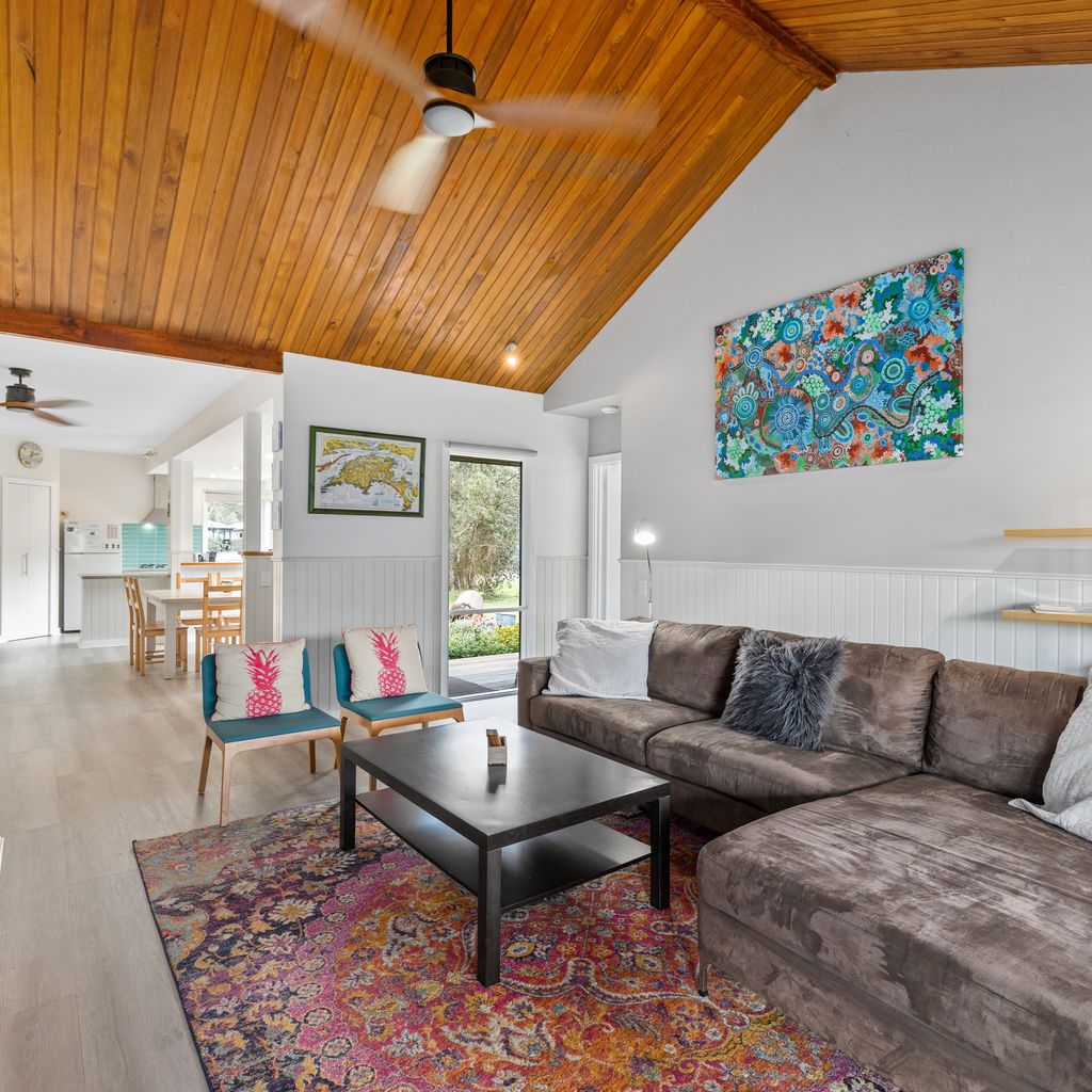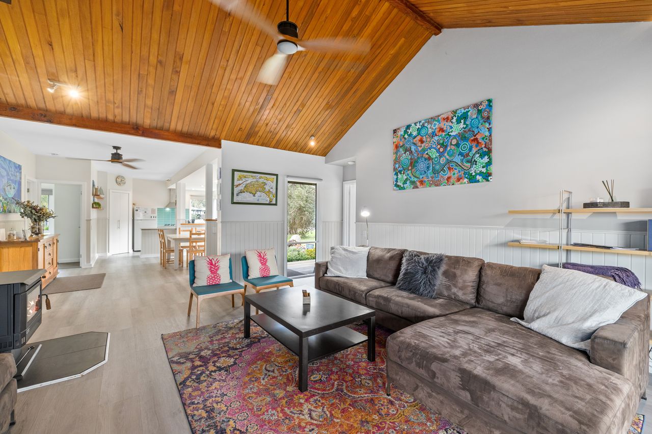 This recently refurbished property exudes a fresh ambiance, boasting a tranquil atmosphere throughout. Step into the expansive living area adorned with cathedral ceilings, enhanced by a rustic wood heater perfect for cozy winter evenings.