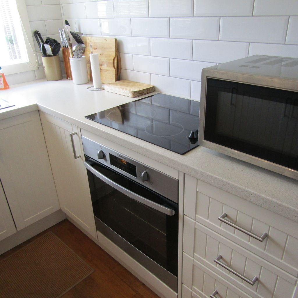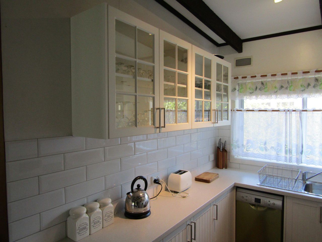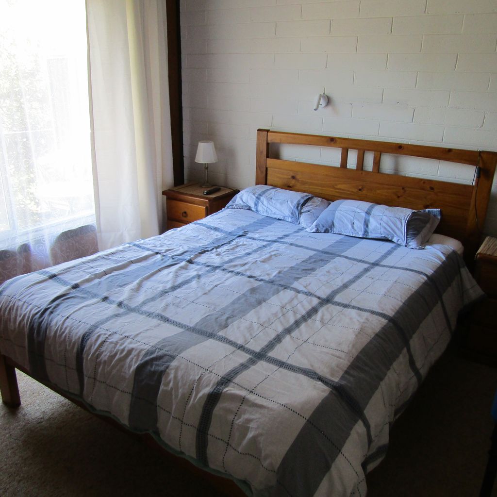 Inside the unit is snug with comfortable sofas, flat screen tv and dvd player and a reverse cycle split system in the main living area. The kitchen is brand new with a new electric oven and hotplates and dishwasher. There is a medium sized fridge and a microwave. The kitchen is fully self-contained with ample pots and pans, cutlery and crockery.
