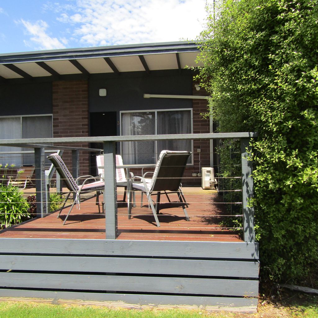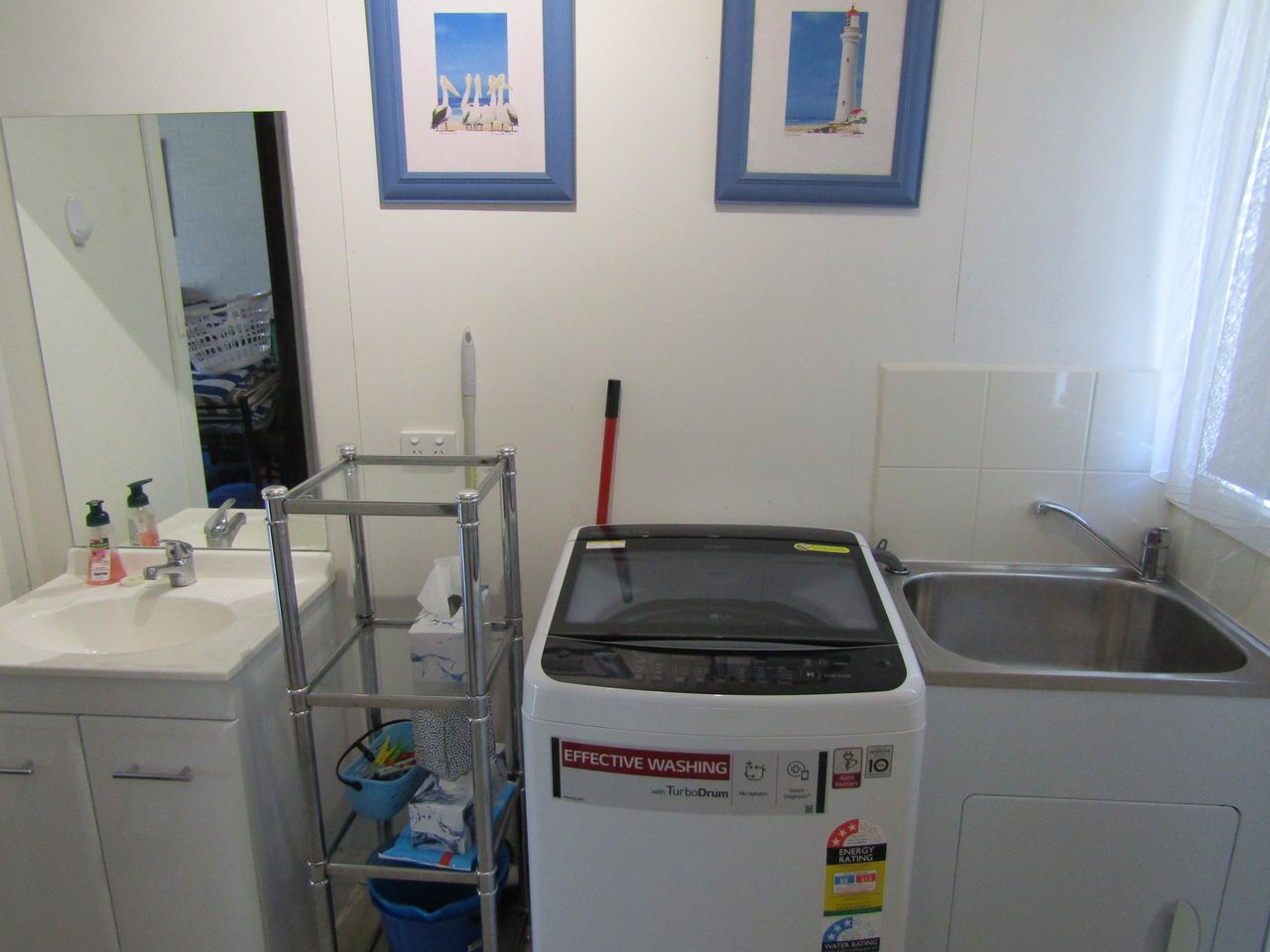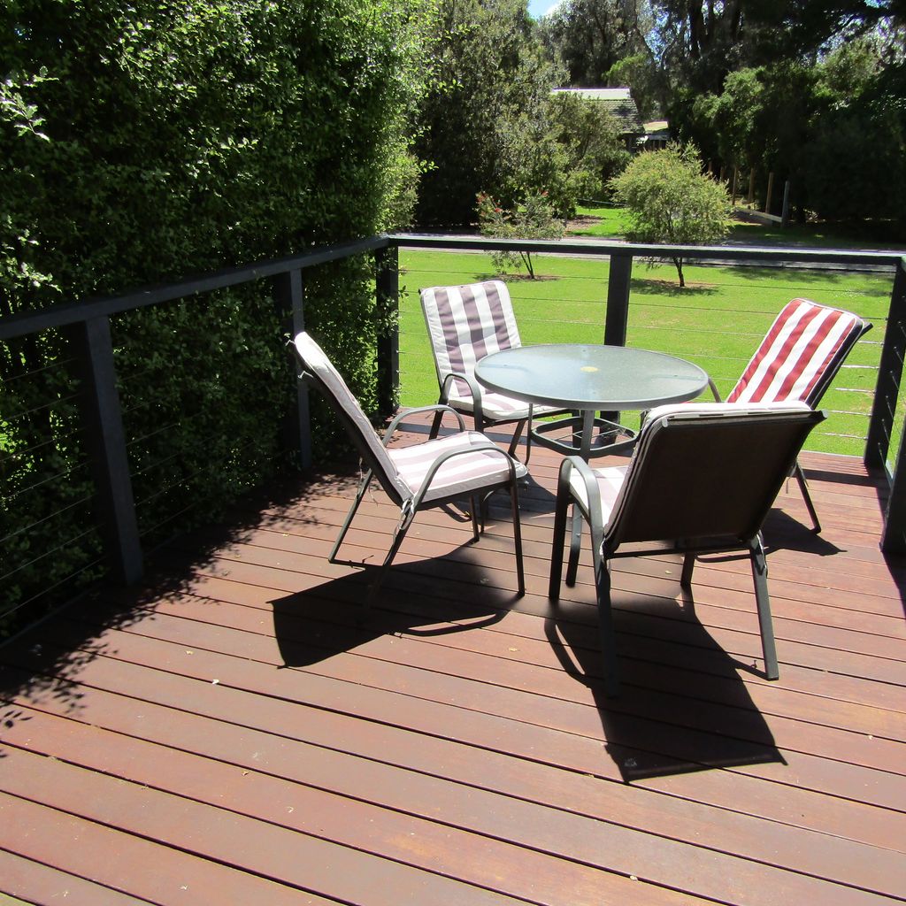 A central dining table completes the living area. There are two bedrooms and the bathroom is combined with the laundry where there is a washing machine, iron and ironing board, laundry trough, wash basin, shower and toilet. There is a lovely deck at the front of the property with room to sit in the sun and relax.