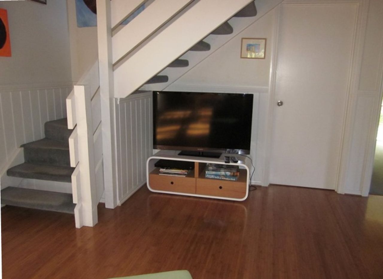 Downstairs are the other 2 bedrooms, 1 with a queen size bed and an ensuite, the other with 2 king singles that can join together to make a king size bed. This area also has a laundry with washing machine, clothes dryer, iron and ironing board.