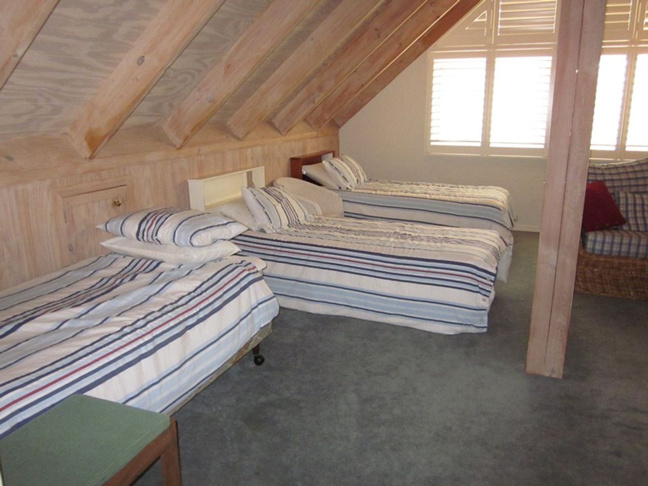 In a loft space upstairs you will find 2 single beds and 1 king size bed, along with a sofa, tv and dvd player. A great space for the kids to hide away.
