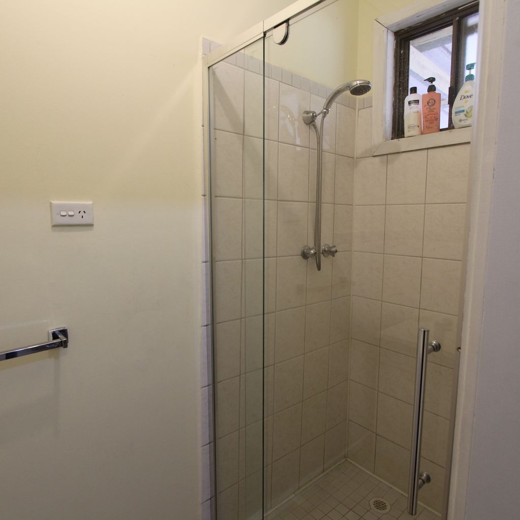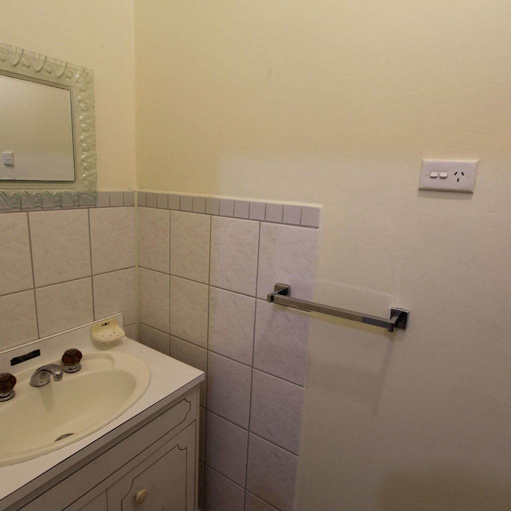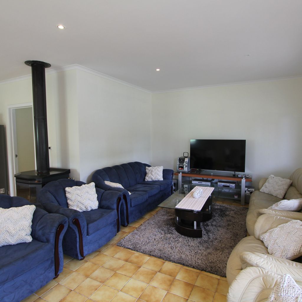 There is a large wood heater in the open living area, as well as a split system for heating and cooling. There are 2 bathrooms at the property, one off the laundry containing a shower & vanity with a separate toilet in the hallway, and another bathroom with separate toilet accessed from outside only.