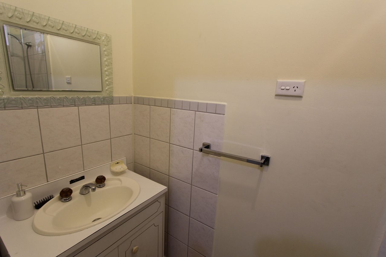 There is a large wood heater in the open living area, as well as a split system for heating and cooling. There are 2 bathrooms at the property, one off the laundry containing a shower & vanity with a separate toilet in the hallway, and another bathroom with separate toilet accessed from outside only.