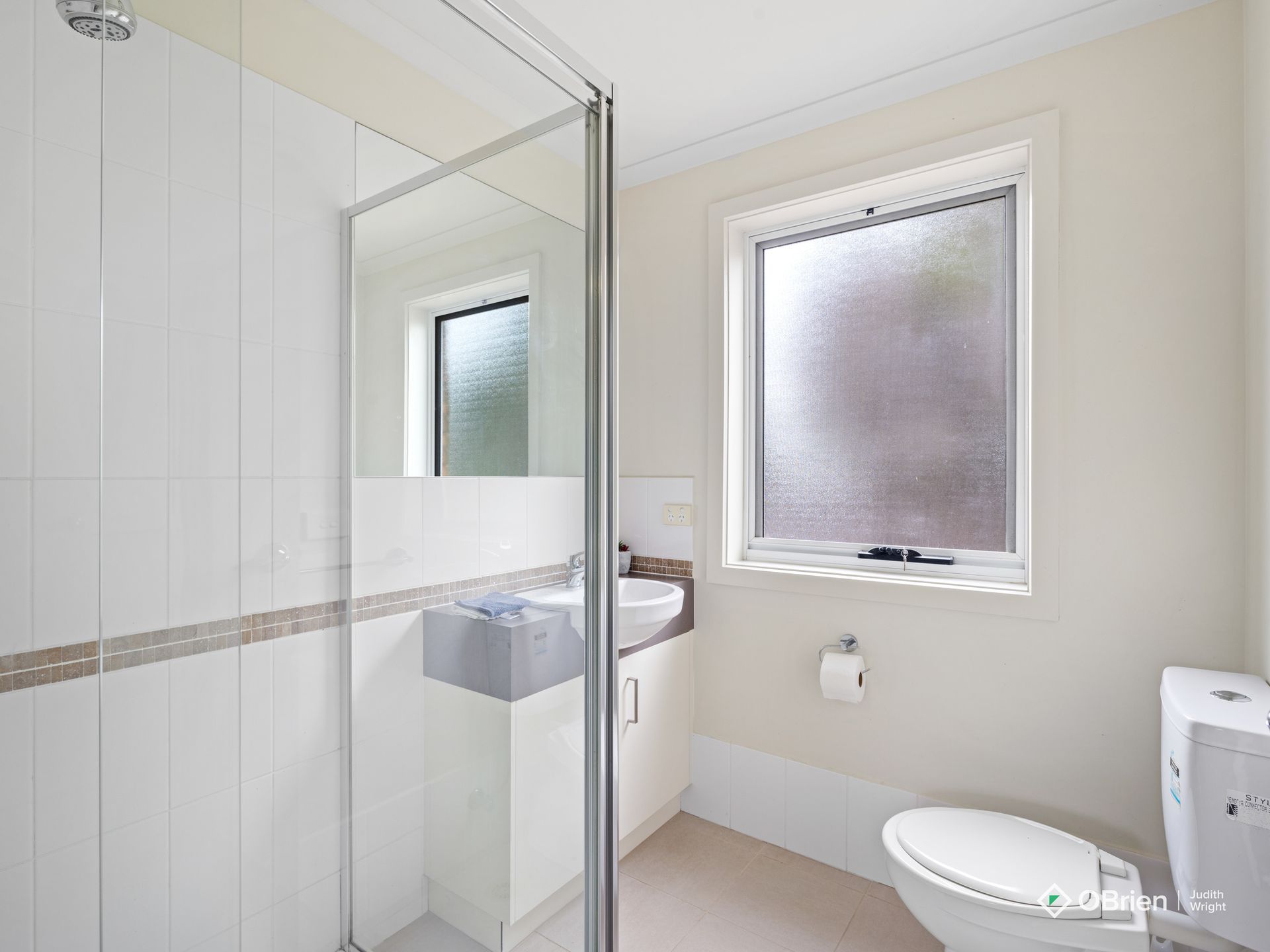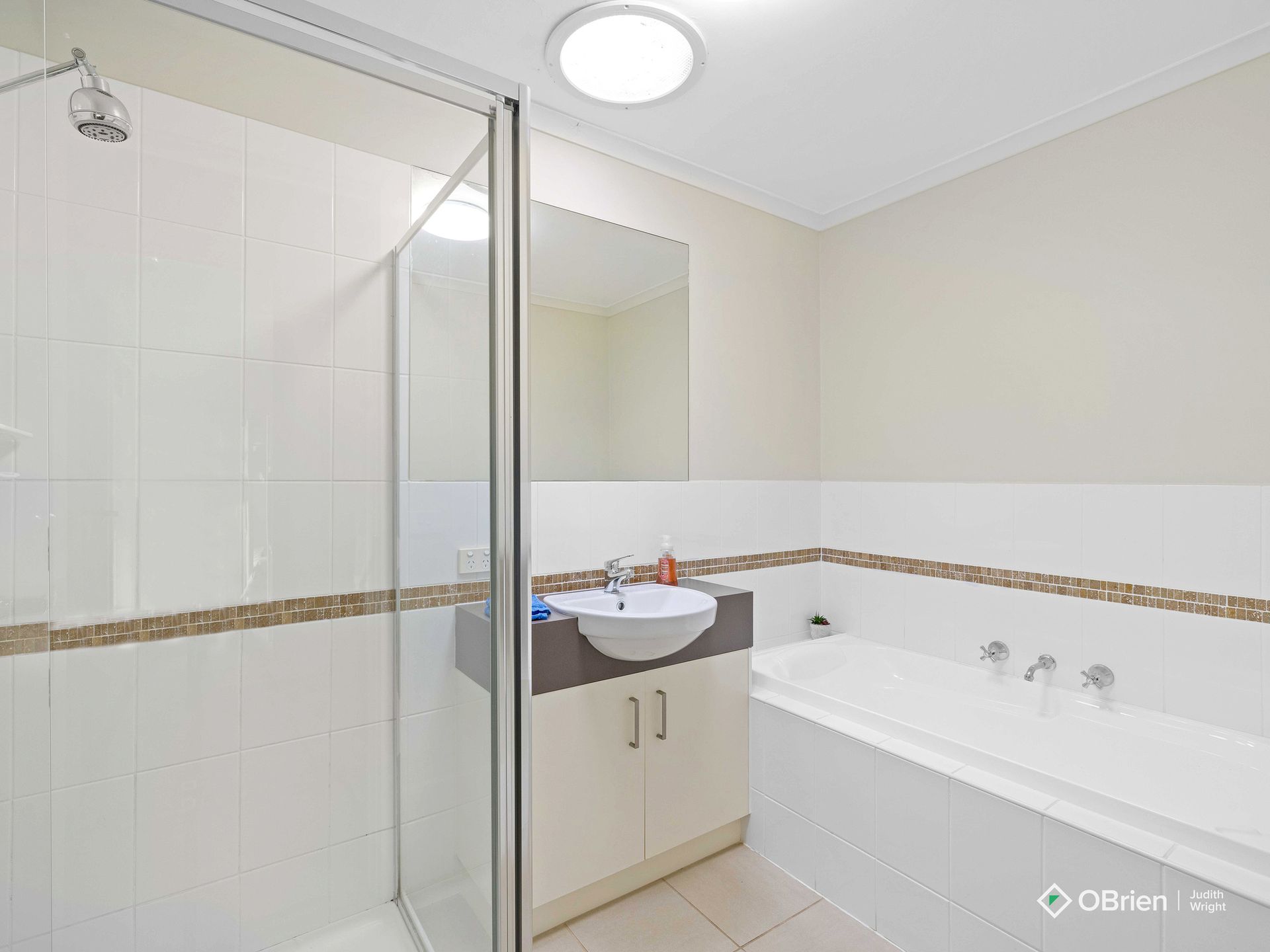 There are three bedrooms, the main bedroom has an ensuite. The family bathroom has a bath and shower. A separate laundry has a washing machine, an iron and ironing board.