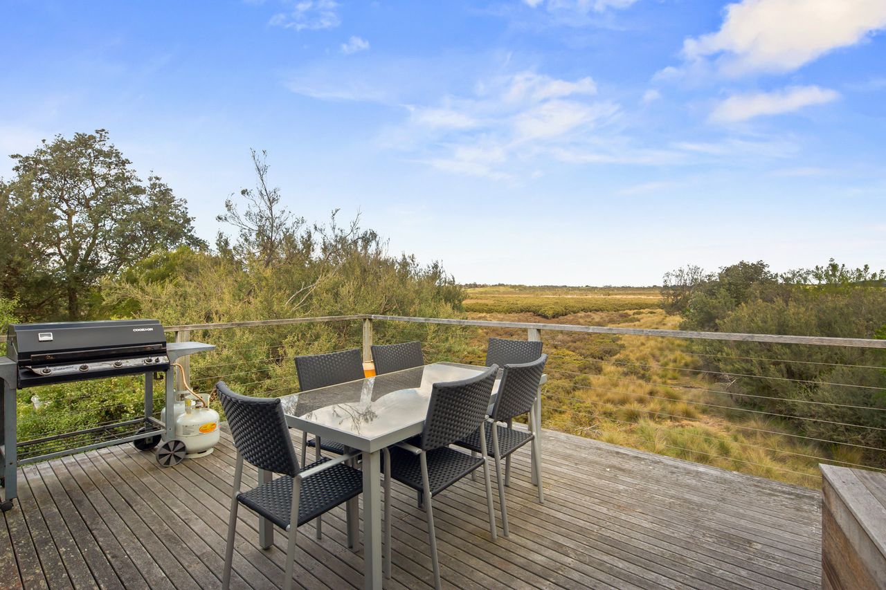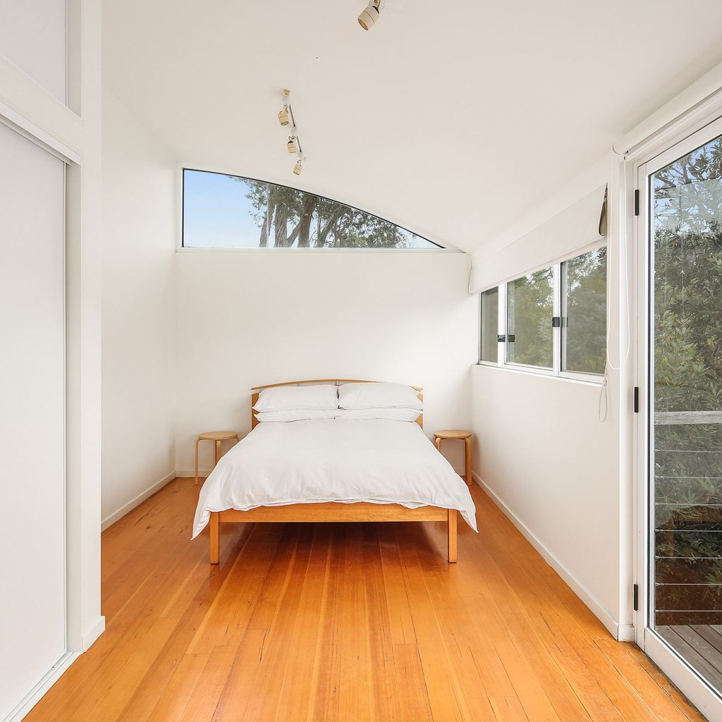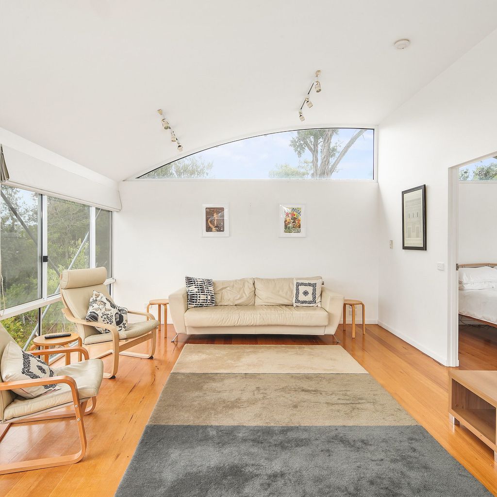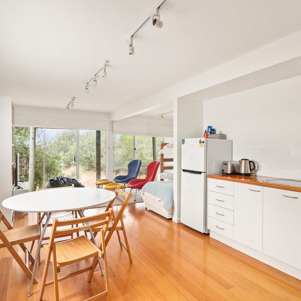 Upstairs find the perfectly appointed kitchen with gas hotplates and electric oven, dishwasher and microwave. The open plan dining and family room open onto a large deck with outdoor seating and Bbq, perfect for enjoying a wine and taking in the beautiful scenery and wildlife. The wall of windows provides a stunning view of the reserve. There is a wood heater to keep you snug during the cooler months.