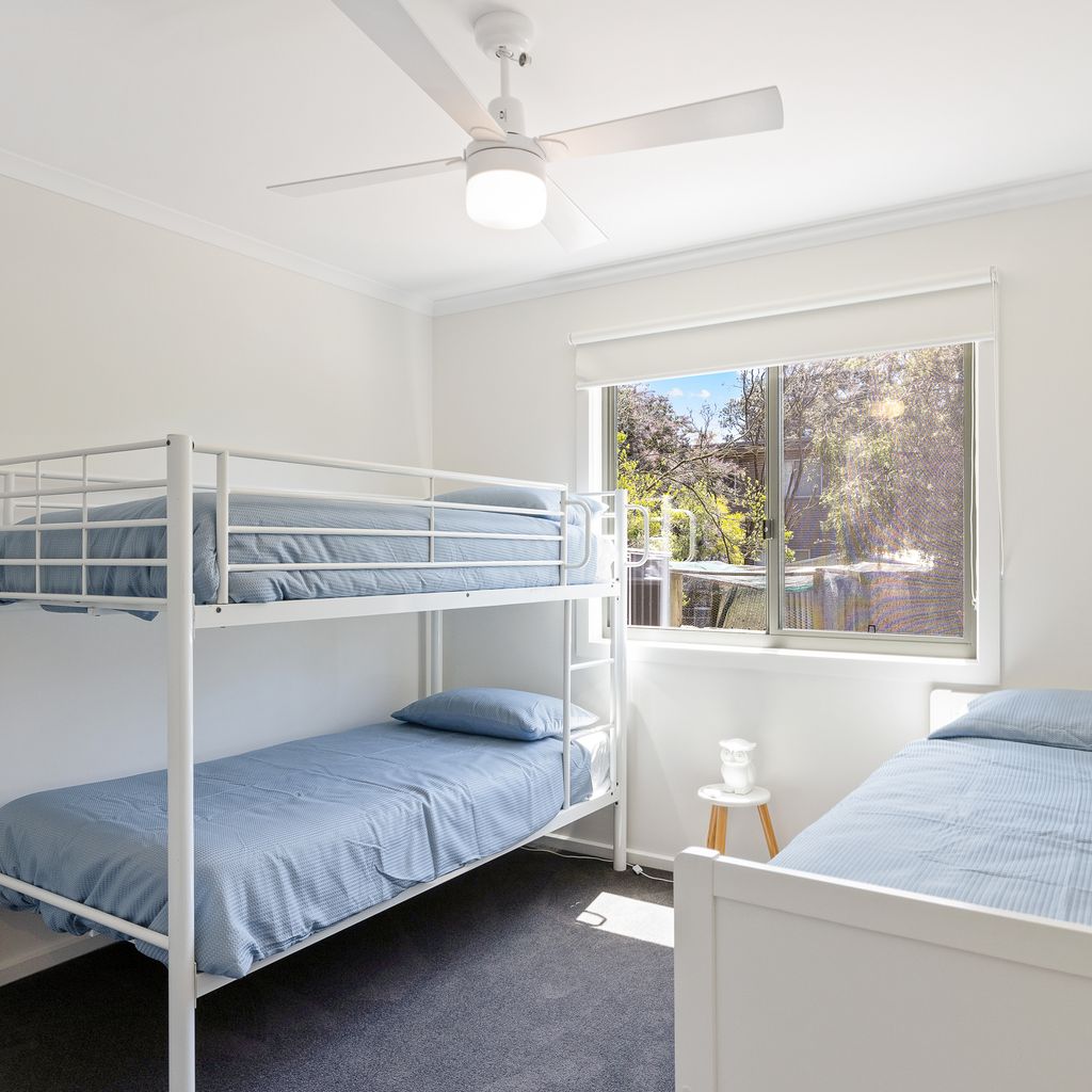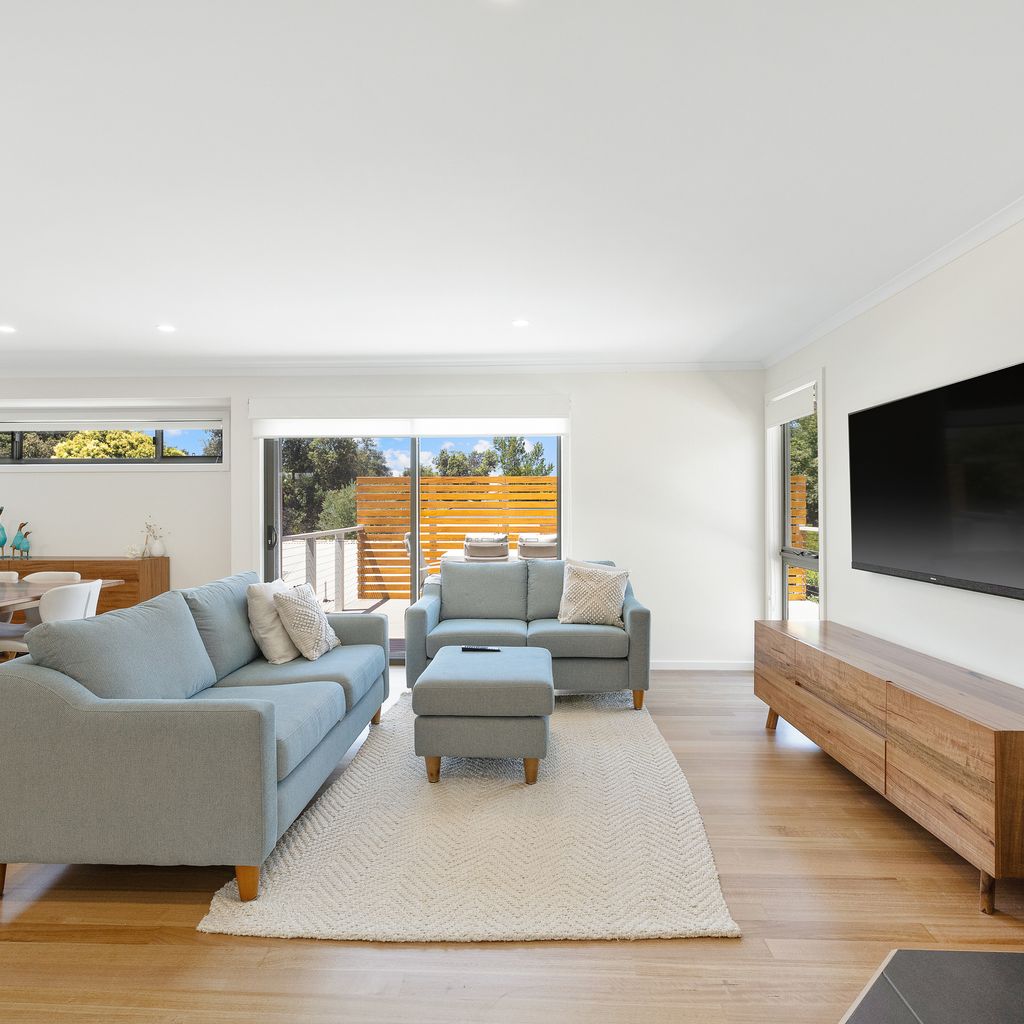 As you step through the entryway of this contemporary two-storey residence, you are greeted by a living area adorned with large windows that allow natural light to flood the space. There is a sofa-bed couch for the children to relax on while watching movies on the big screen TV and a split-system for year round comfort.