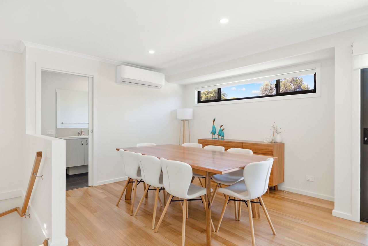 The centerpiece of the living area is a cozy indoor fireplace, perfect for chilly evenings and intimate gatherings. Adjacent to the living area is a stylish open-plan kitchen, complete with sleek appliances, ample storage, and a chic island countertop ideal for culinary endeavors. The kitchen seamlessly flows into the dining area, creating a harmonious space for entertaining guests and creating lasting memories. The living area then leads out directly to a balcony, providing a peaceful retreat to enjoy your morning coffee or unwind in the evening and enjoy a BBQ. Completing the upstairs amenities is an additional split system and a spacious elegantly appointed bathroom.