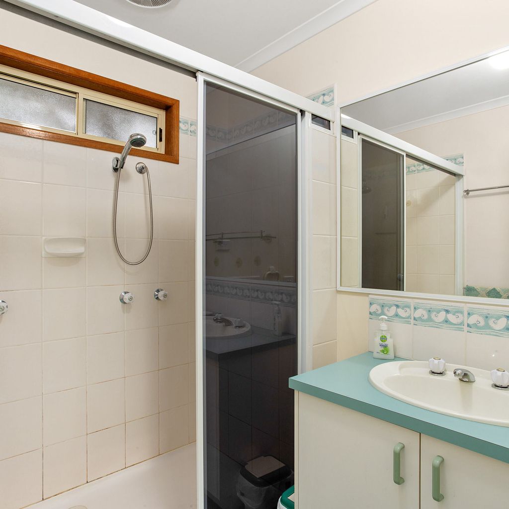 Step onto the rear deck and enjoy distant water views, a gas BBQ, and outdoor setting — perfect for summer evenings. The home includes three comfortable, carpeted bedrooms, a family bathroom, and a well-equipped laundry with washer, dryer, and ironing facilities.